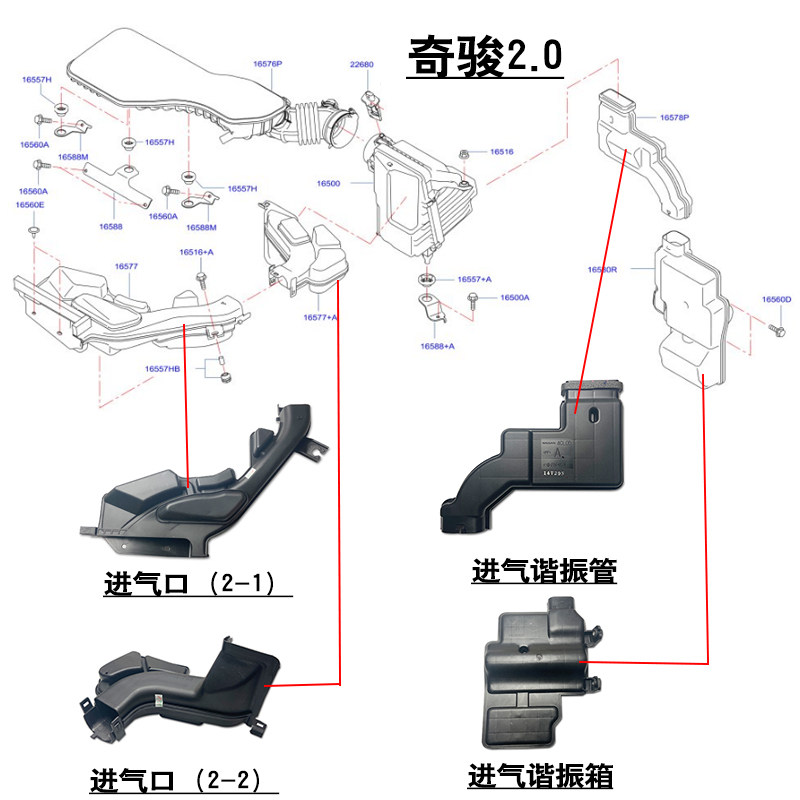 📚 适用14-20款奇骏逍客2.0空气进气管道扰流板谐振箱消音壶风口软管