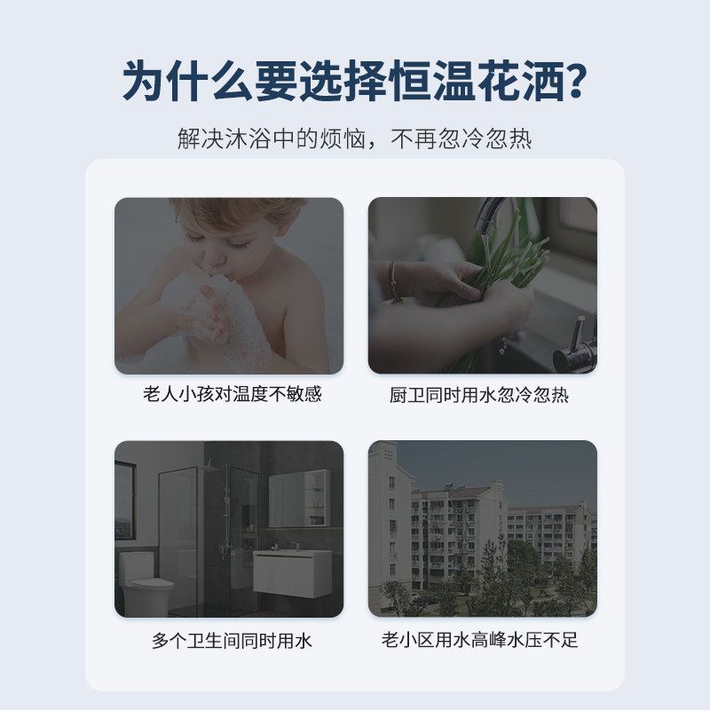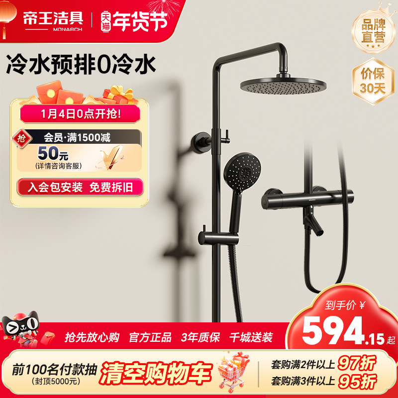 📚 帝王洁具恒温智能家用沐浴三出水卫生间0冷水空气增压大顶喷花洒