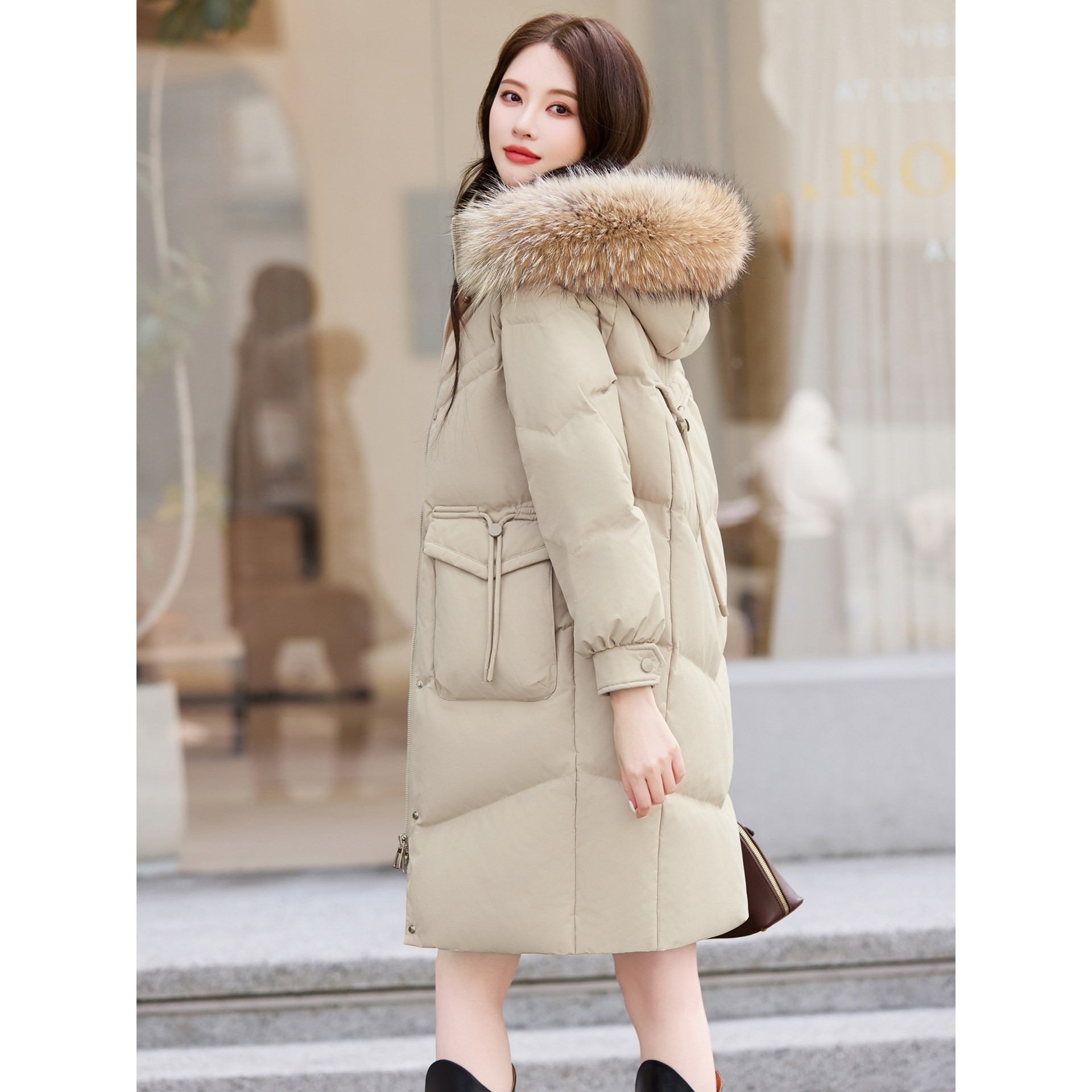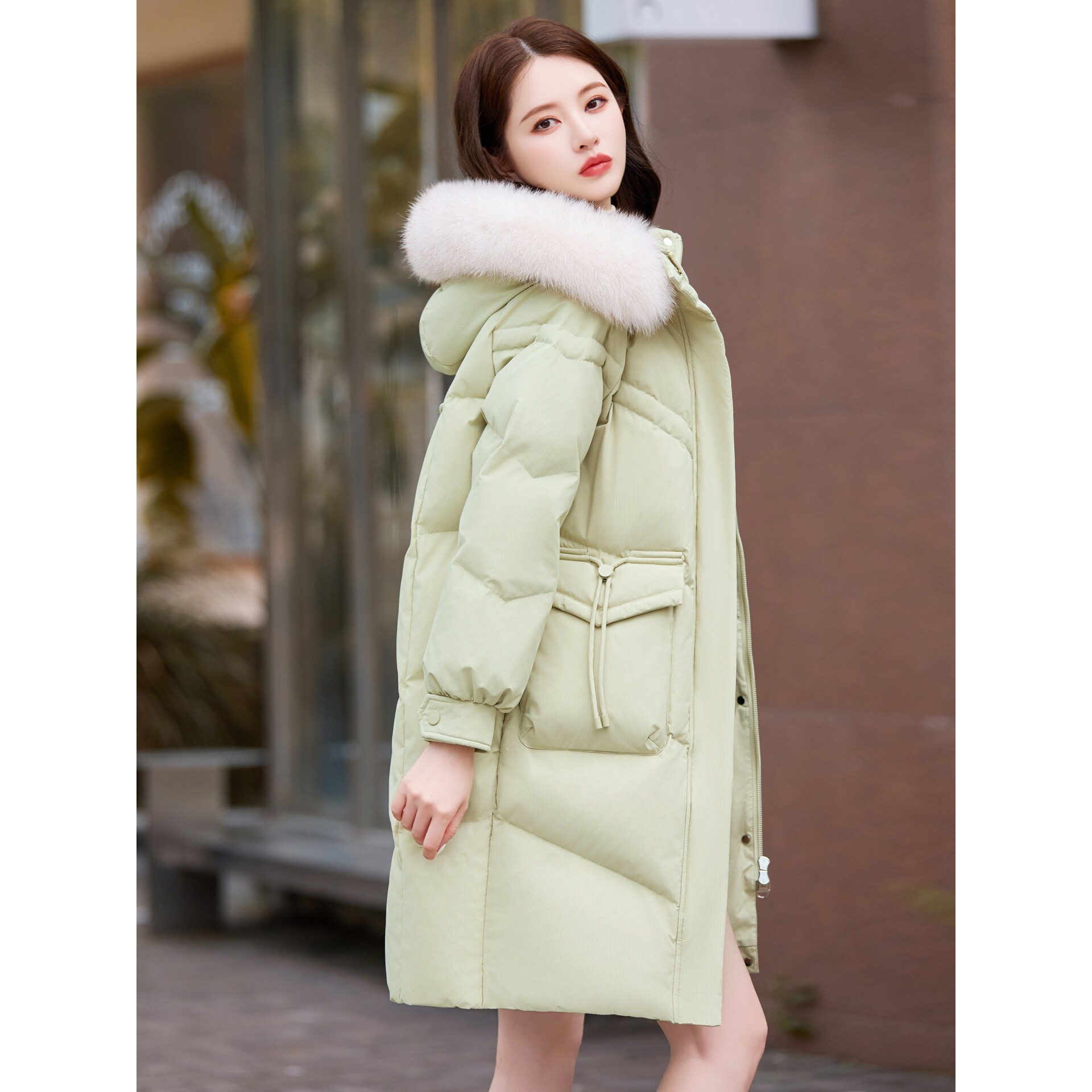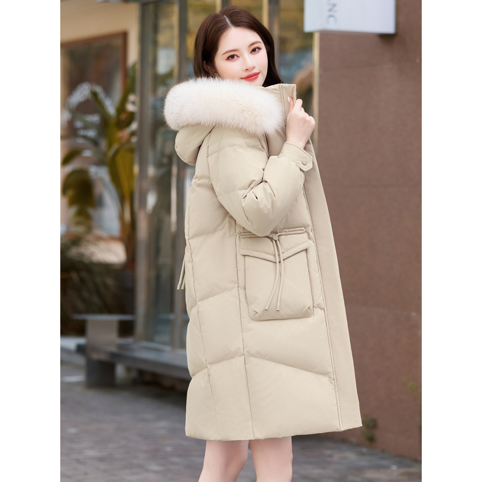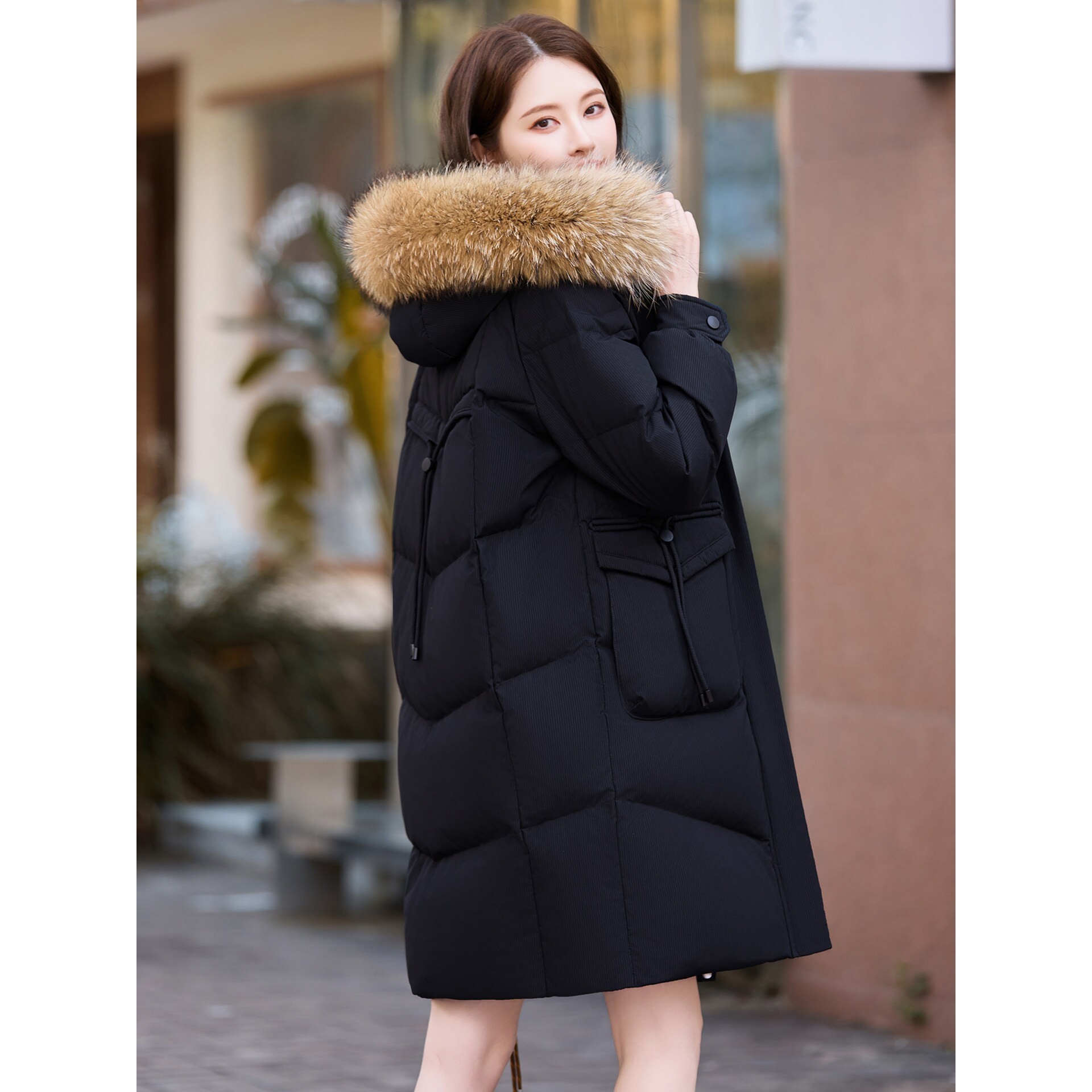 📚 啄木鸟羽绒服女中长款2025冬季新款洋气大毛领白鸭绒加厚保暖外套