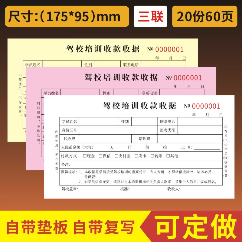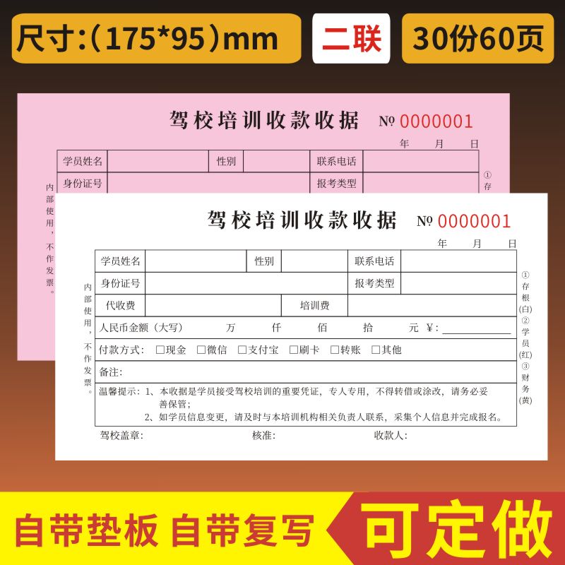 📚 驾校培训专用收据二联三联驾驶员培训收款单驾照证收费收据驶证驾照收费款单据驾校学员培顺收款凭证可定制