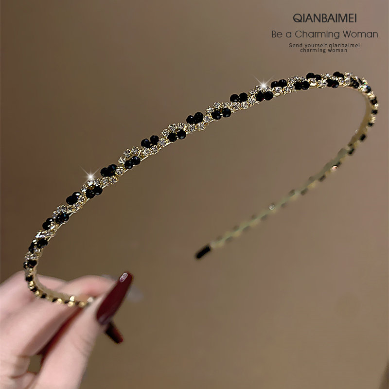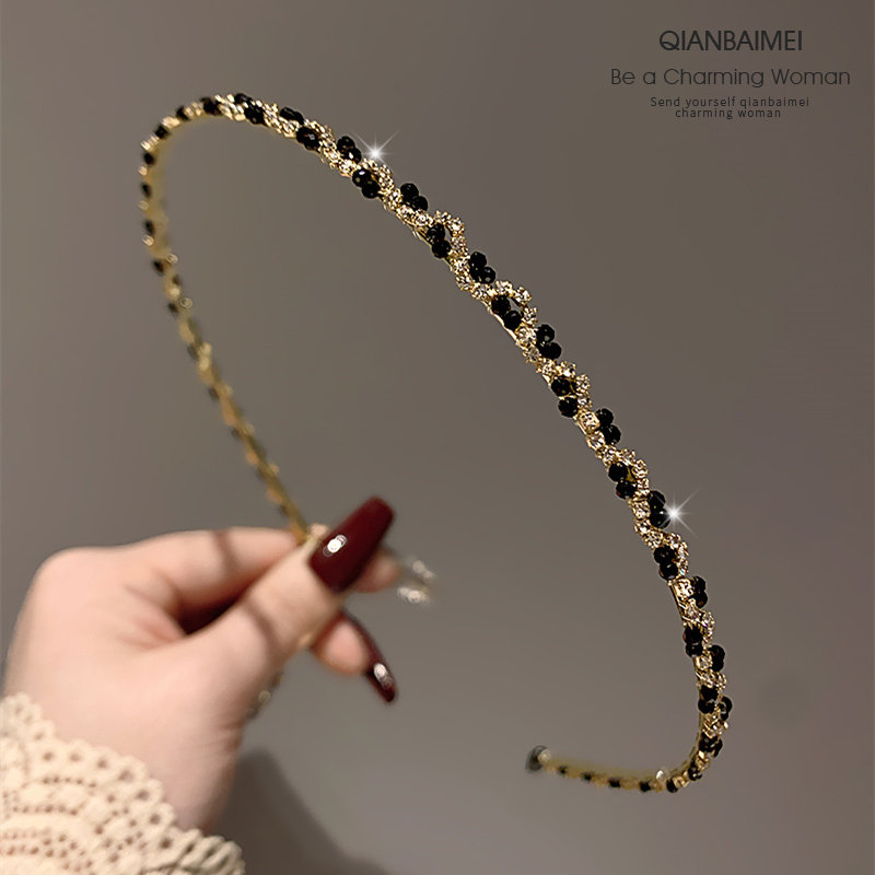 📚 黑色细款水钻发箍女2024新款高级感压发发卡超仙气质复古头饰头箍
