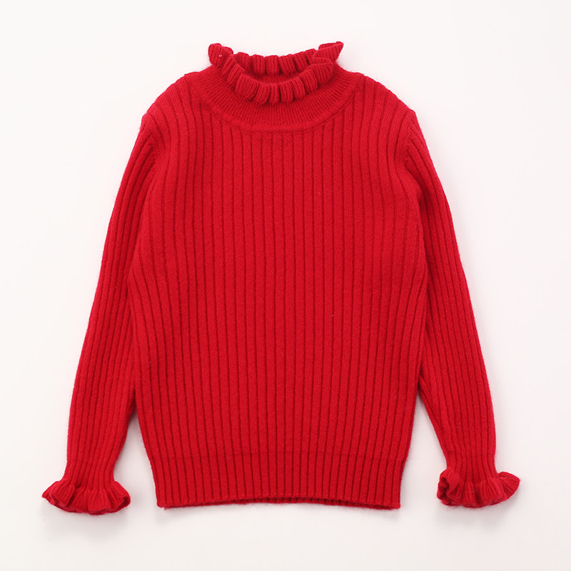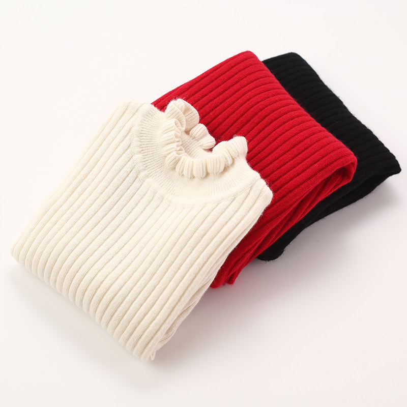 📚 秋冬薄款女童山羊绒百搭木耳领白色针织打底衫宝宝毛衣儿童羊绒衫