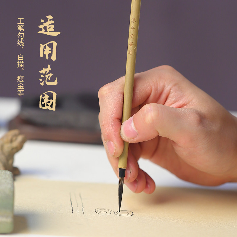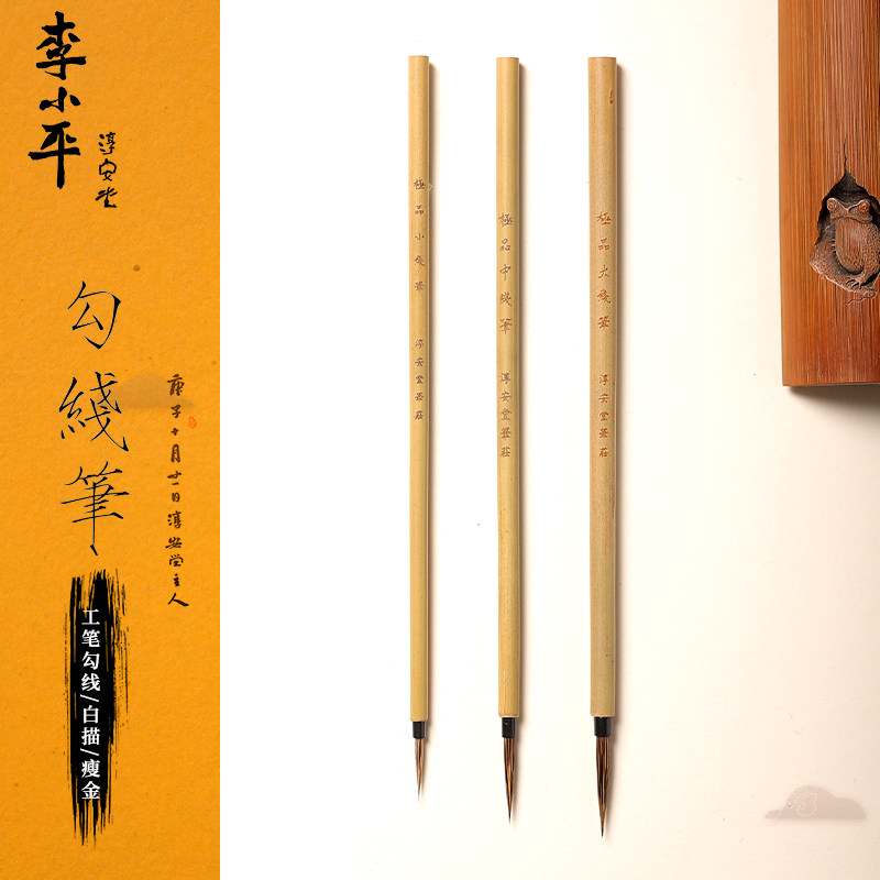 📚 李小平淳安堂笔庄勾线笔工笔山水白描用笔书法绘画毛笔大中小套装系列瘦金可用大师级国画兔毫描线笔练习可用