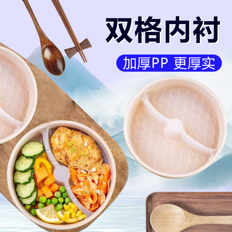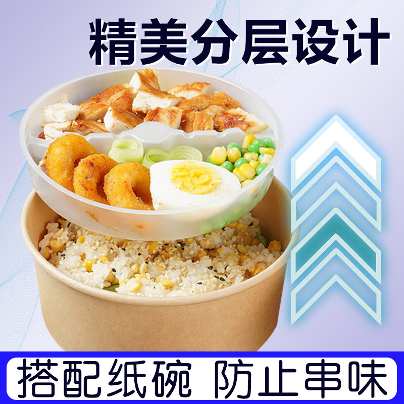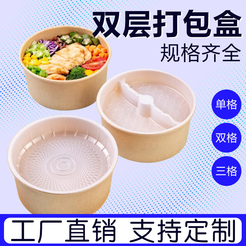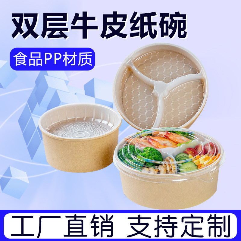 📚 一次性牛皮纸碗内托双层内衬外卖打包盒单双三格分层餐盒隔层