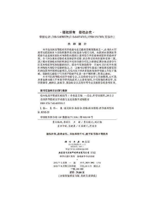 📚 临床免疫学检验实验指导(供医学检验卫生检验等专业使用全国高等院校医学检验专业实验教学规划教材)李永念