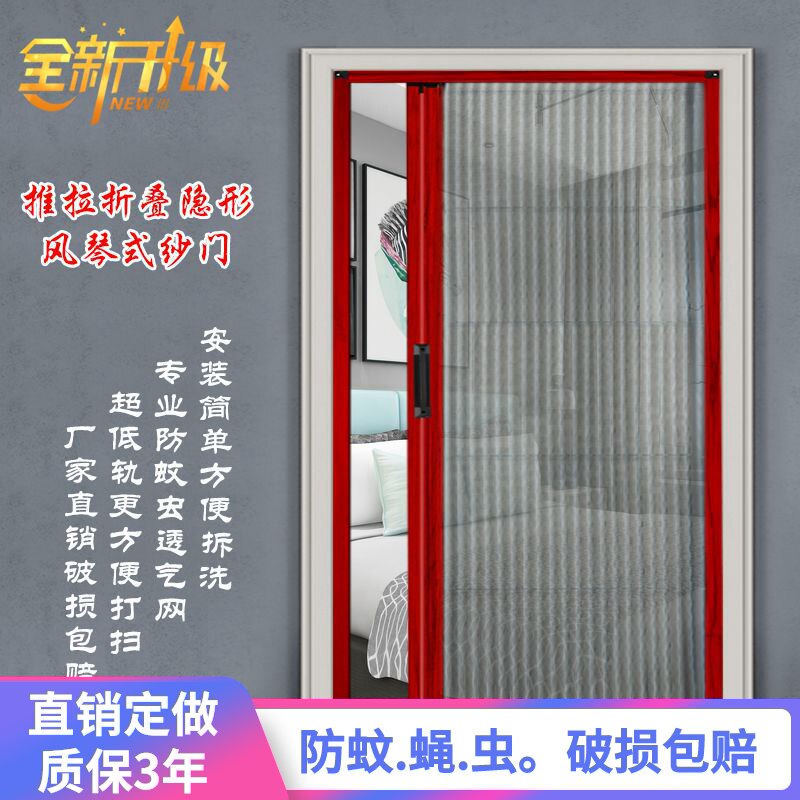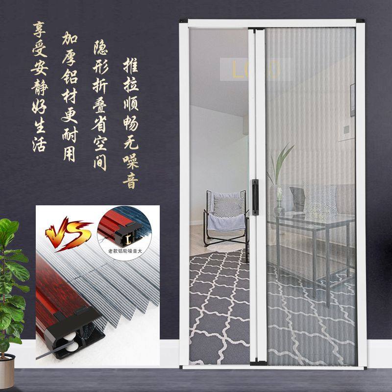 📚 纱门推拉门房间家用纱网铝合金免打孔简易折叠入户门沙门防蚊门帘