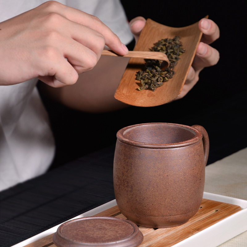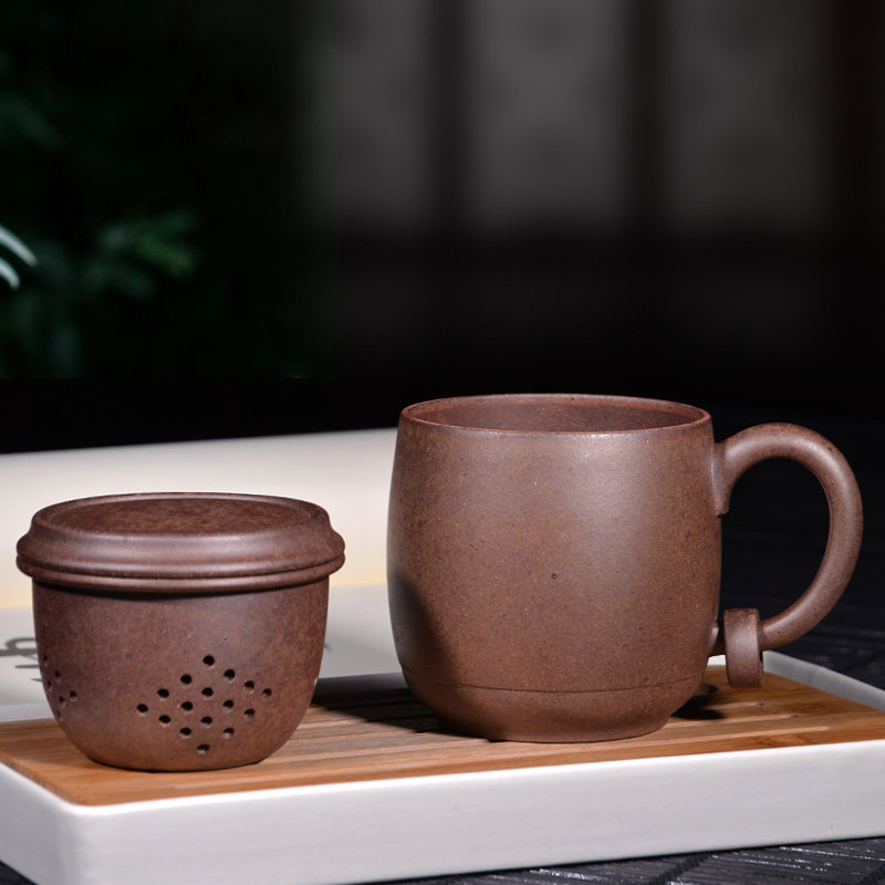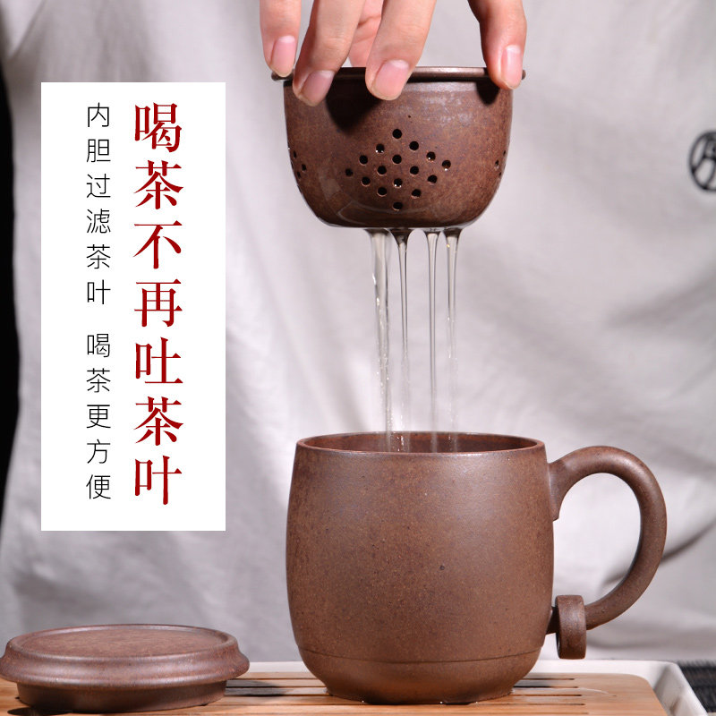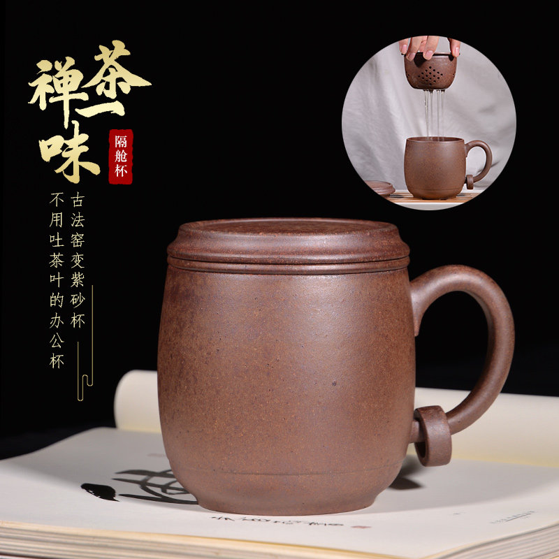 📚 吉羊 柴烧窑变紫砂杯纯手工茶杯 宜兴原矿办公杯茶禅一味杯