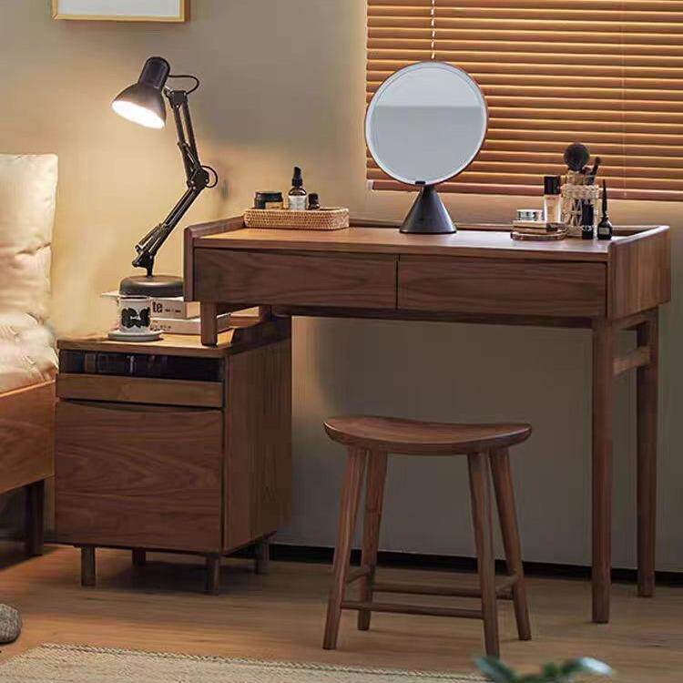 📚 北欧实木梳妆台书桌一体可伸缩北美黑胡桃木日式小型卧室化妆桌