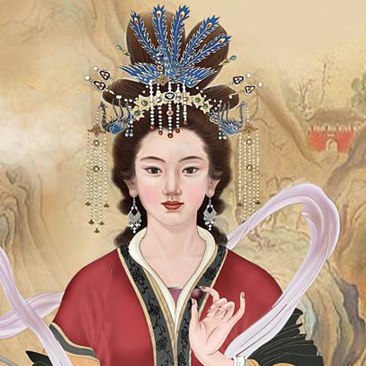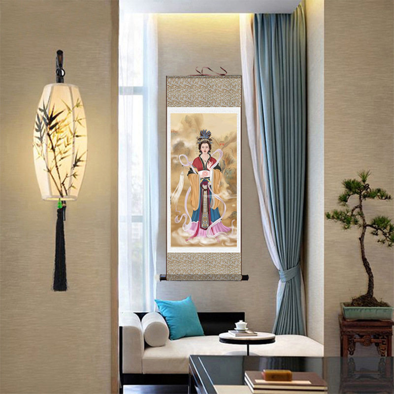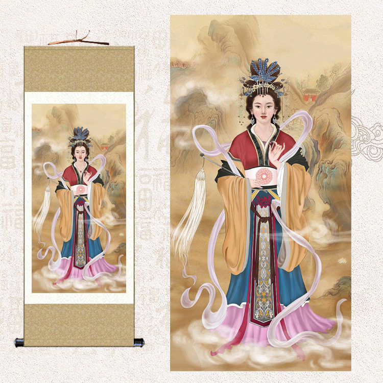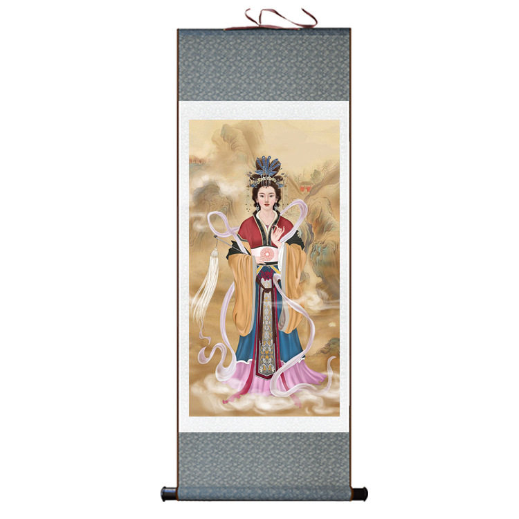 📚 泰山圣母碧霞元君画像 泰山娘娘老母供奉挂画 神仙女神丝绸卷轴画