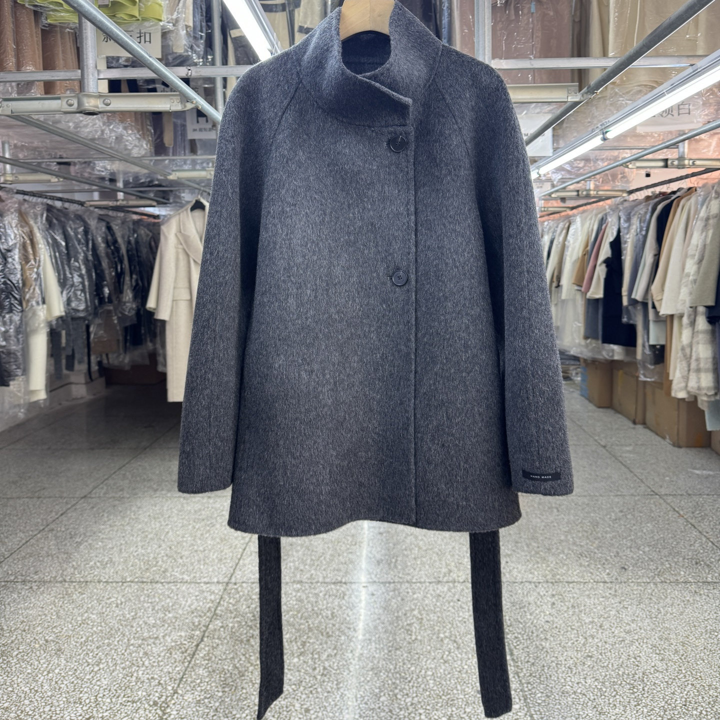 📚 雅致灰立领短款牦牛绒双面羊毛大衣女25秋冬新款韩版气质毛呢外套