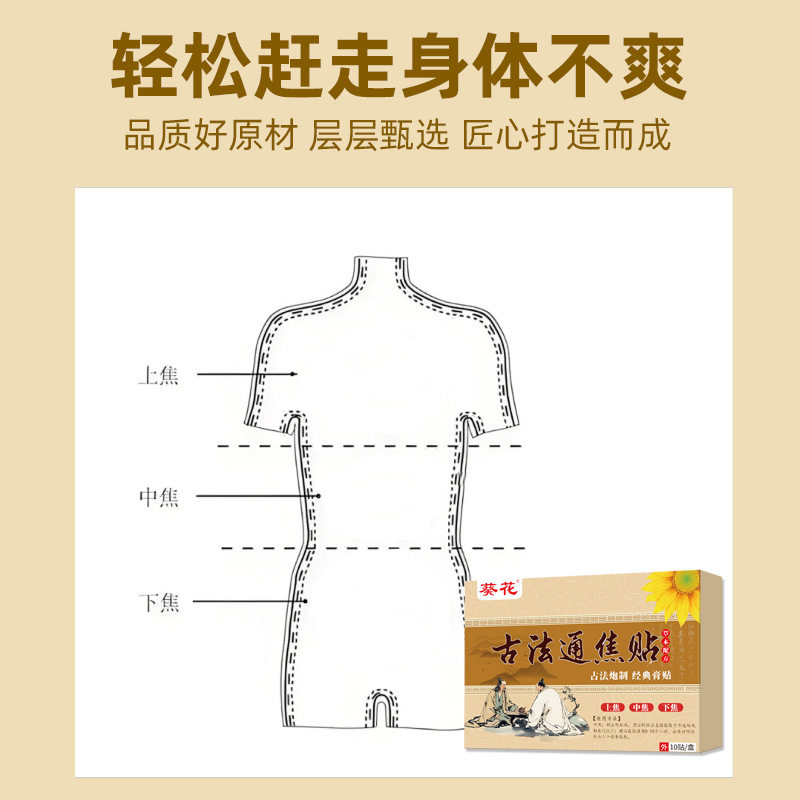 📚 葵花古法通焦贴上焦中焦下焦三焦不通膏药贴调理肚脐贴艾草湿寒