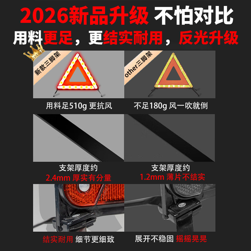 📚 汽车三角架警示牌三脚架支架车用反光安全车辆车载停车故障三角牌