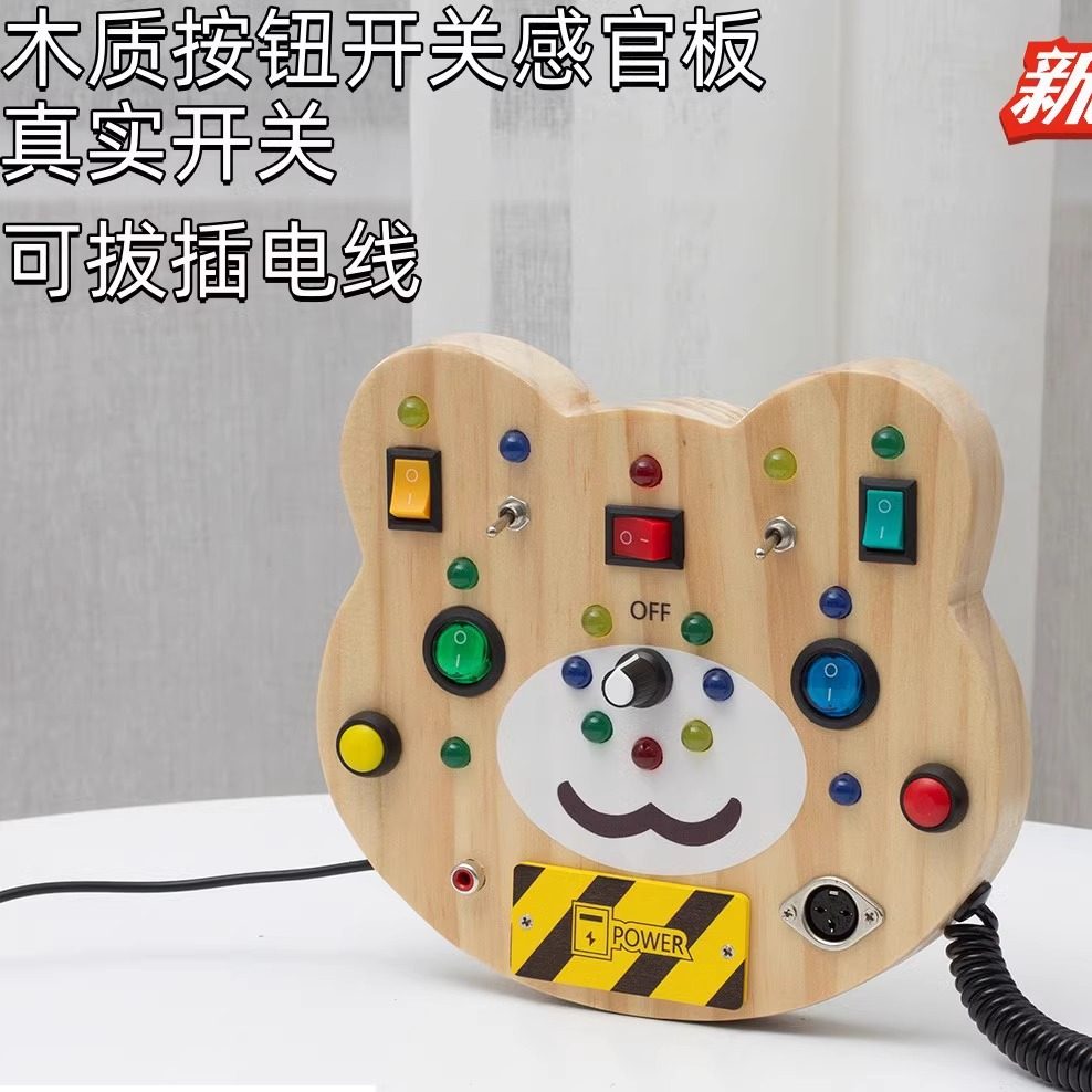 📚 Montessori幼儿童玩具按钮开关感官板3岁宝宝木制LED灯开关忙碌板