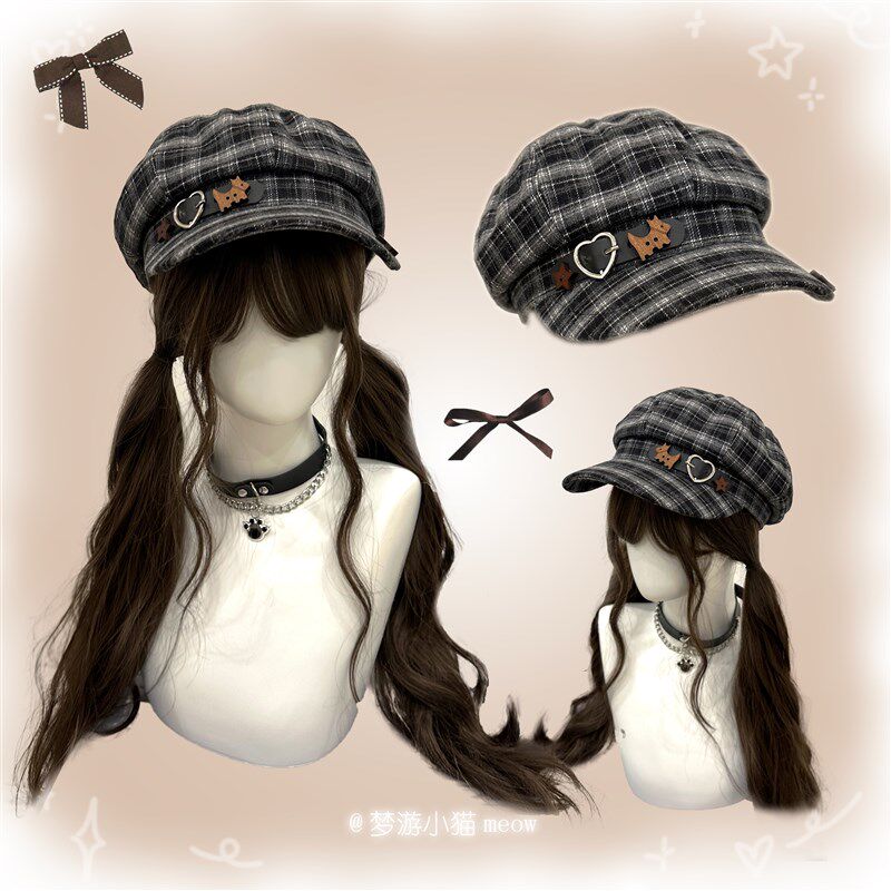 📚 梦游小猫/八角帽女秋冬新款复古学院格纹报童贝雷帽子可爱