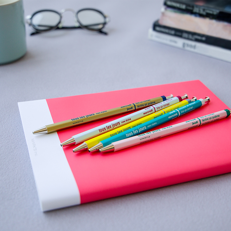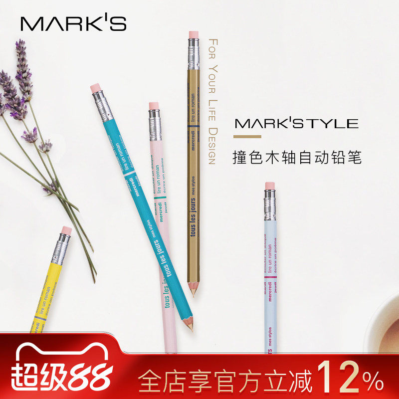 📚 marks MARK'STYLE系列马卡龙撞色款木轴按压自动铅笔带橡皮书写考试绘图学生用0.5mm铅芯金色黄色木杆