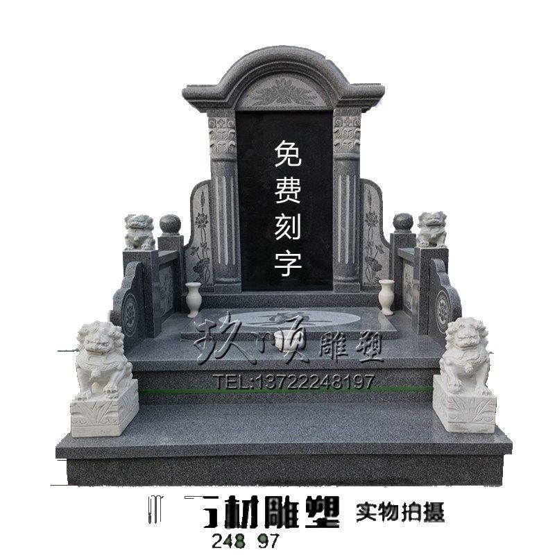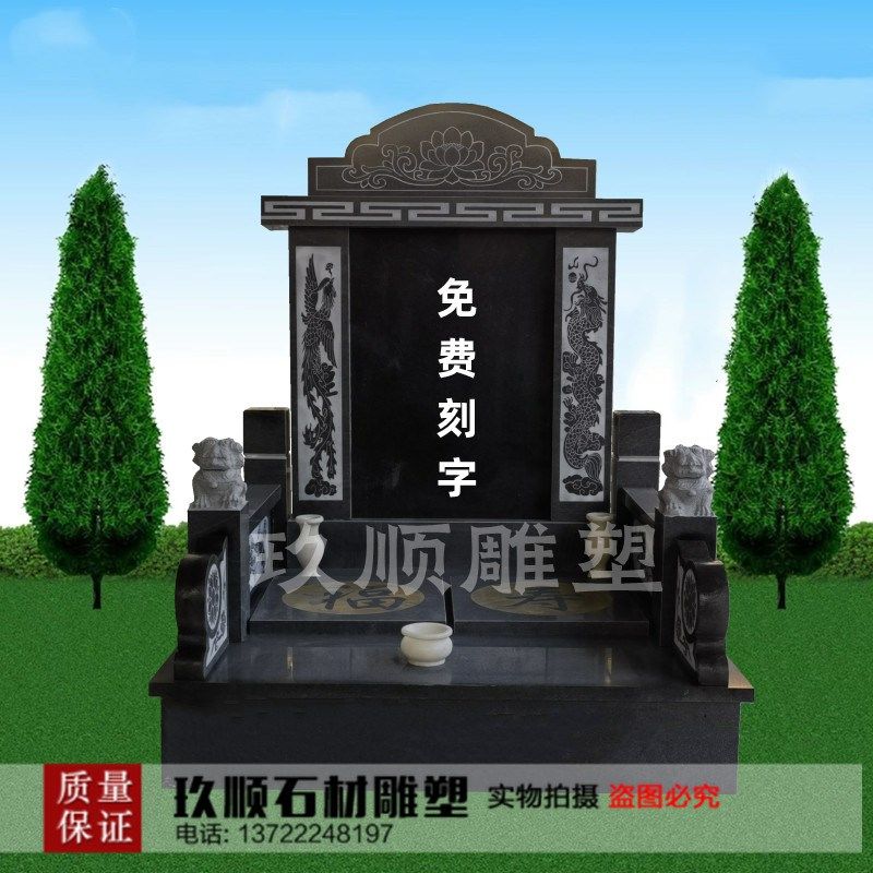 📚 墓地双人合葬墓碑花岗岩组合中式芝麻黑石碑家族墓公墓土葬石墓碑