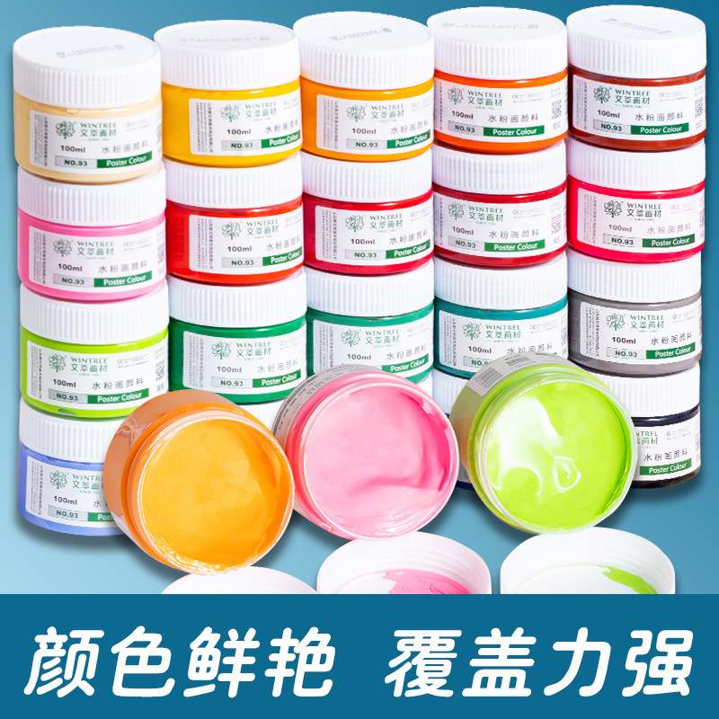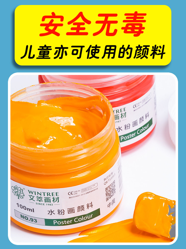 📚 文萃水粉颜料美术生专用套装手指画罐装24色学生广告画颜料补充装
