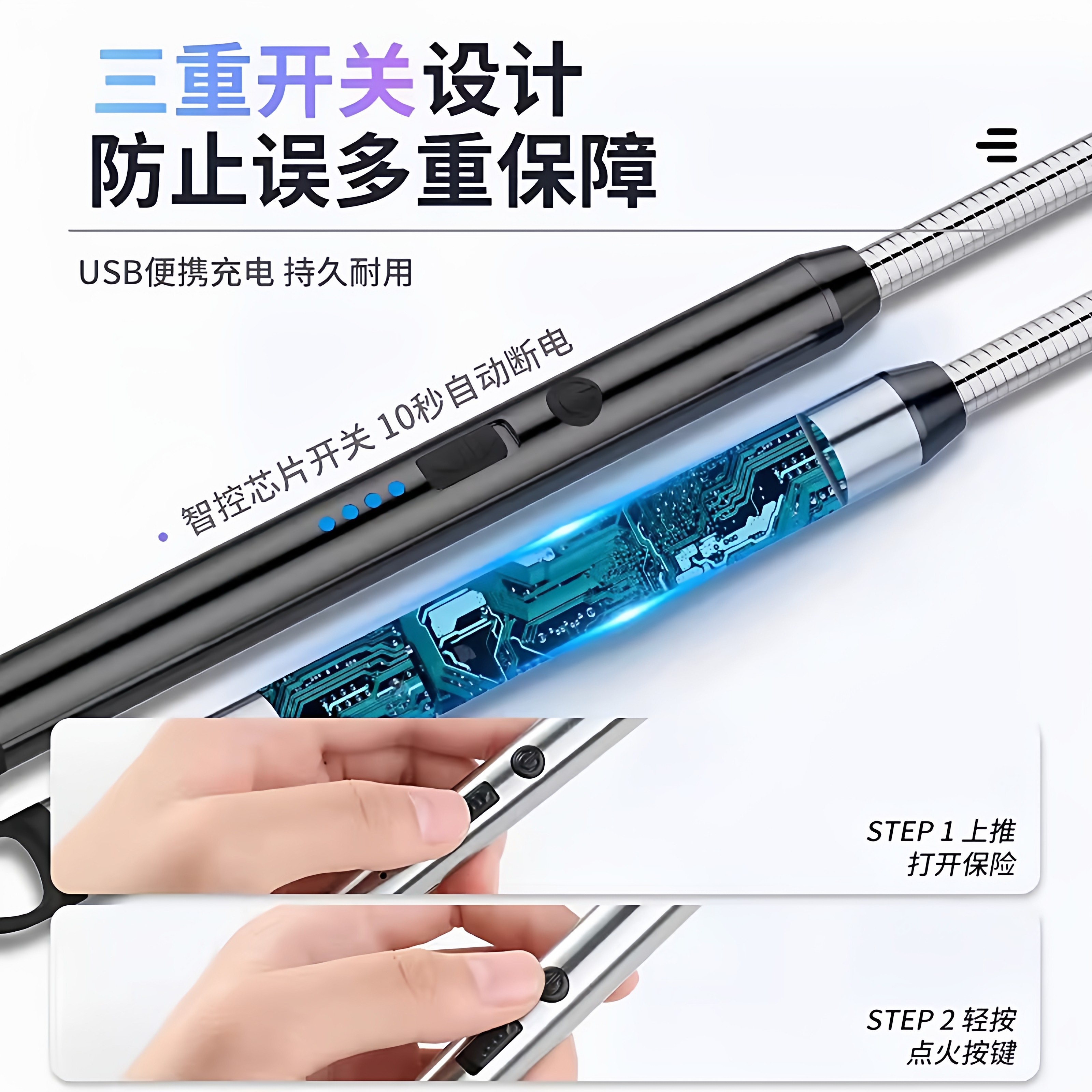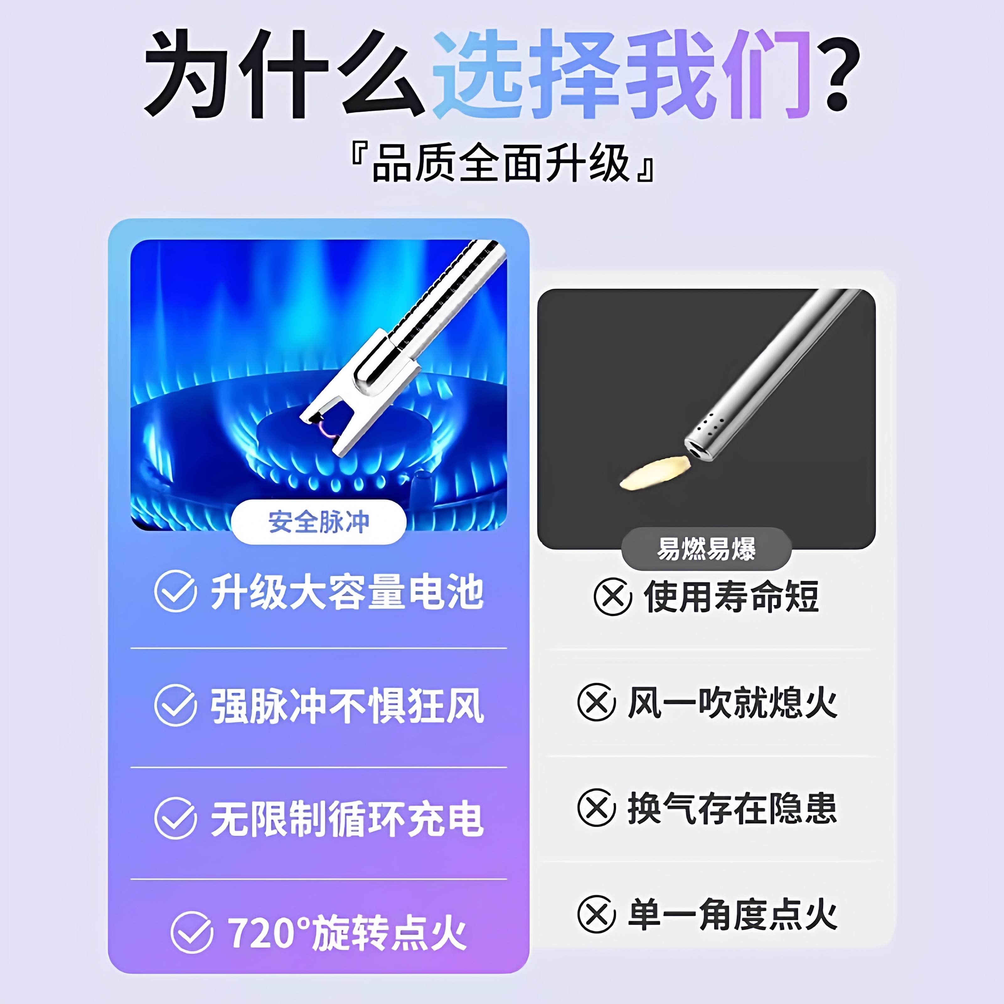📚 燃气灶脉冲点火器煤气灶打火机长手柄烟花鞭炮防风电子点火枪充电