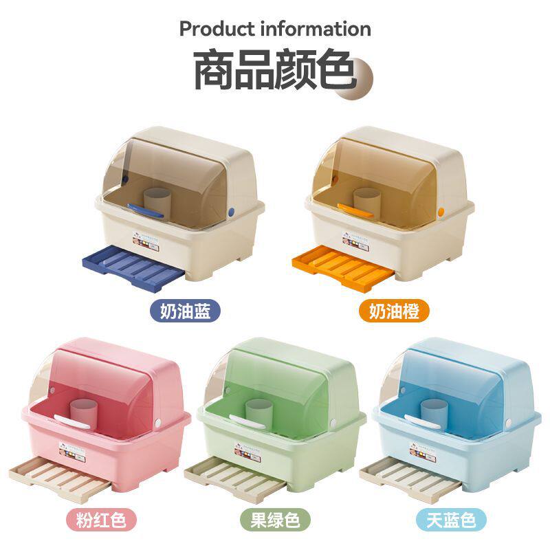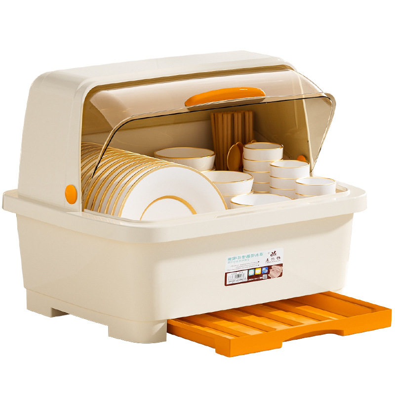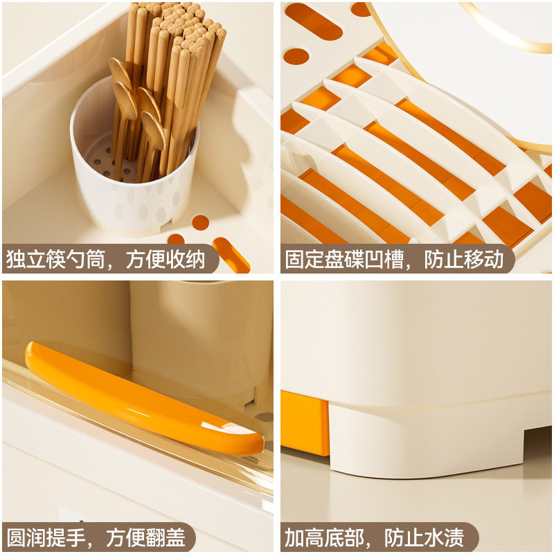 📚 家用大容量防尘塑料碗柜可翻盖分区餐具沥水架加厚带盖碗筷收纳盒