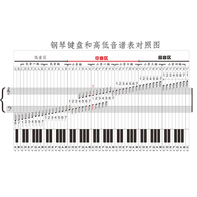 📚 键盘与五线谱简谱对照图海报音符对照表大谱表与钢琴键盘对照表