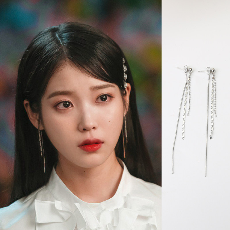 📚 德鲁纳酒店iu爱心长款流苏耳环2023新款潮s925银针耳钉耳线女网红