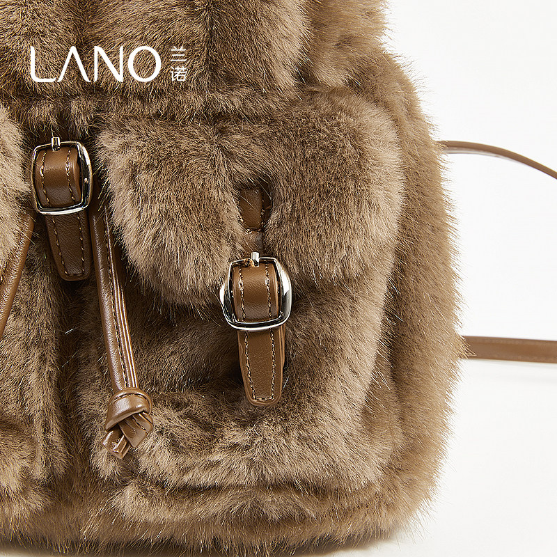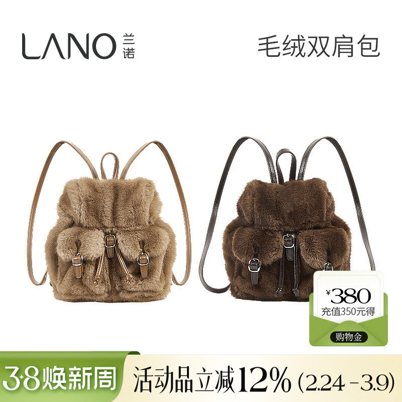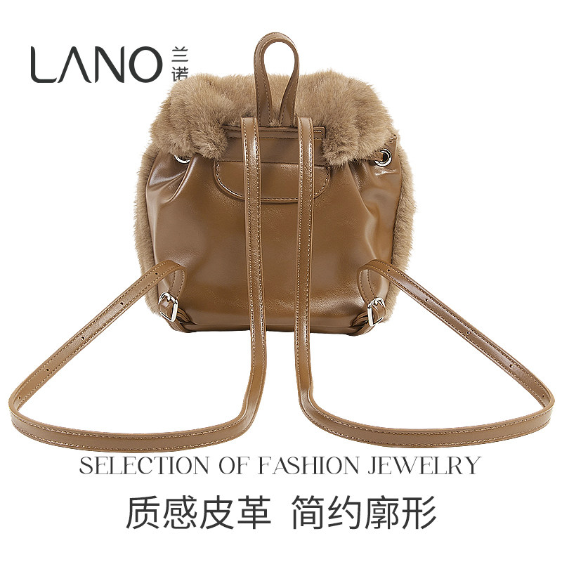 📚 兰诺毛绒双肩包书包女2025秋冬新款轻奢小众高级感日常通勤包女包