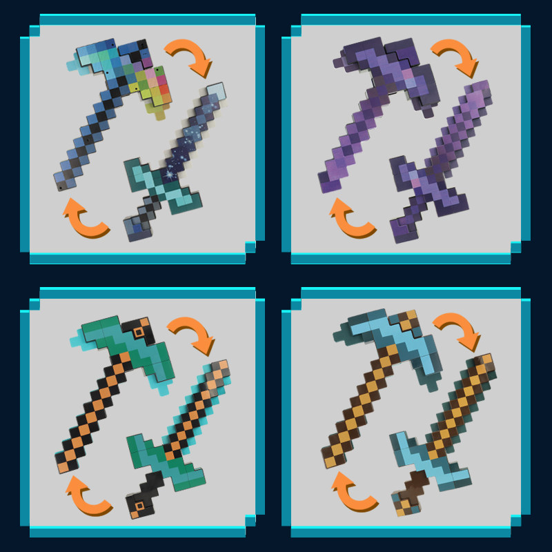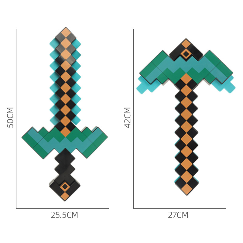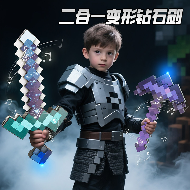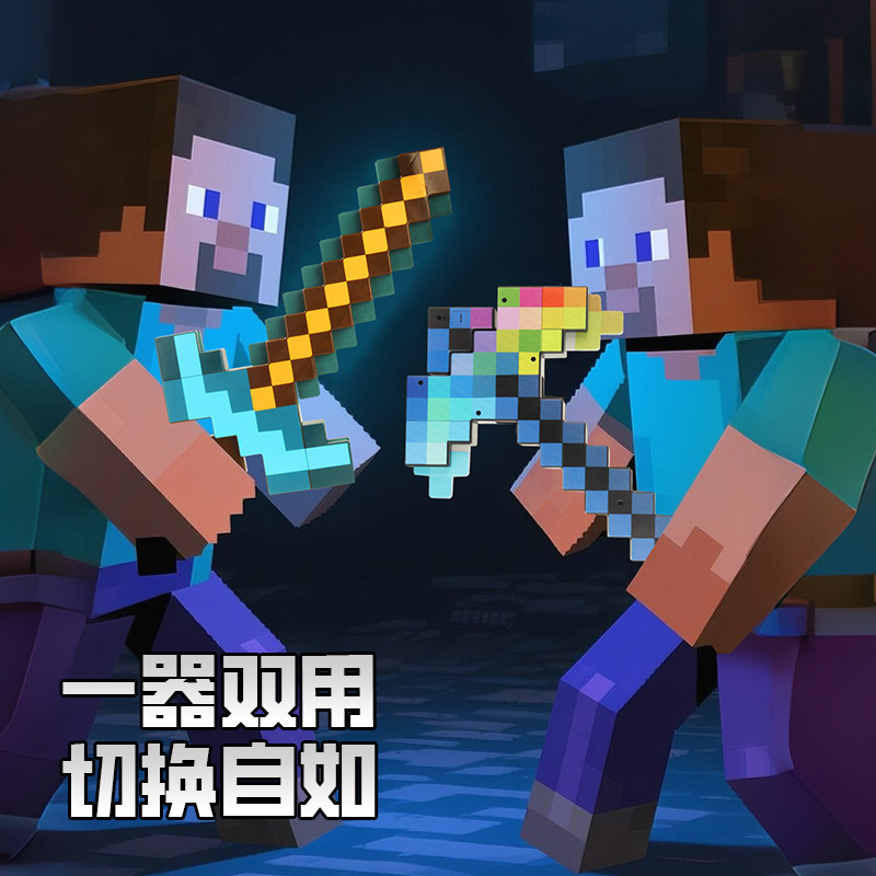 📚 我的世界钻石剑镐二合一玩具mc下界合金可变形附魔弓箭武器刀模型