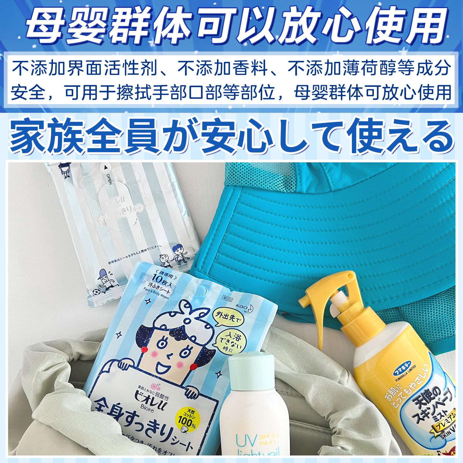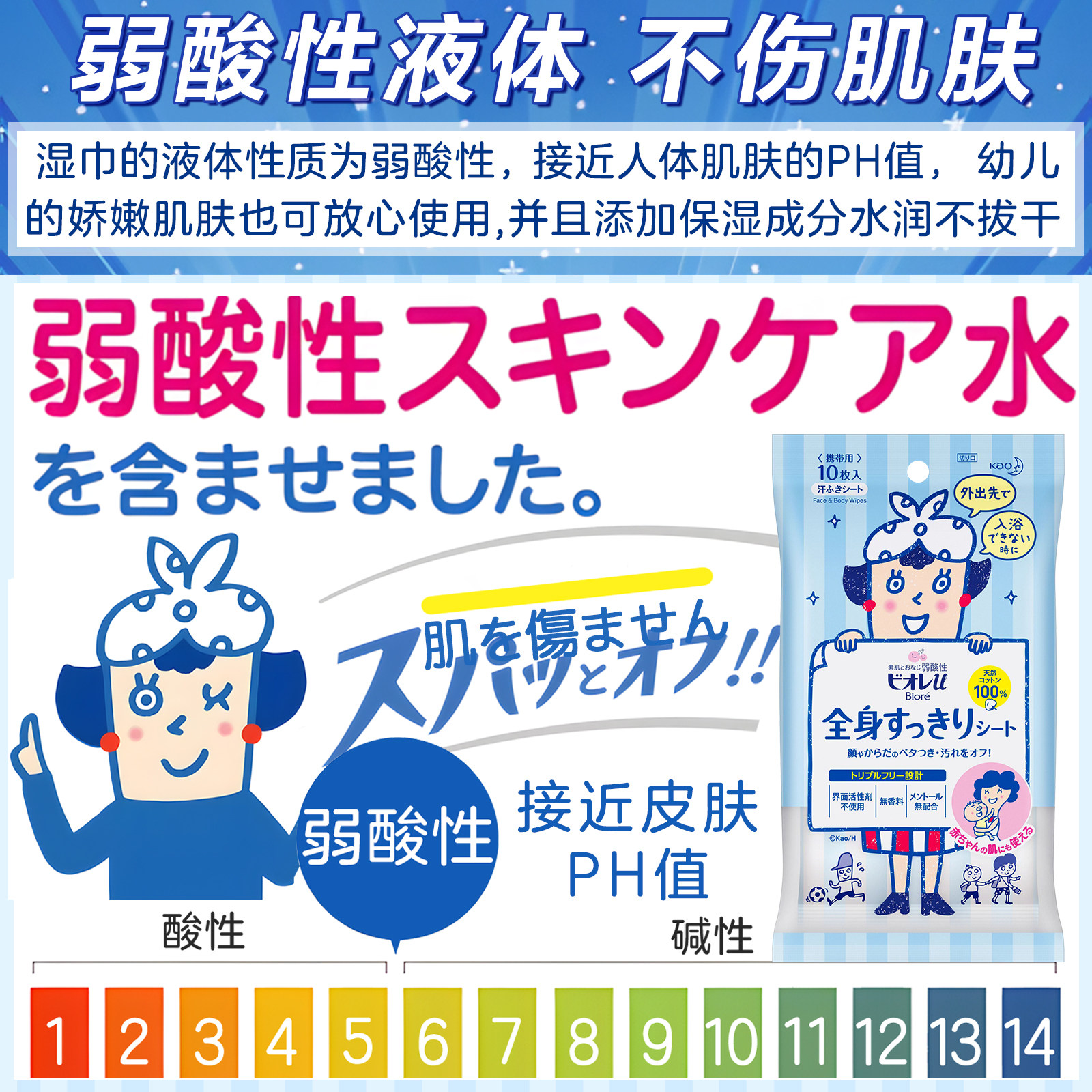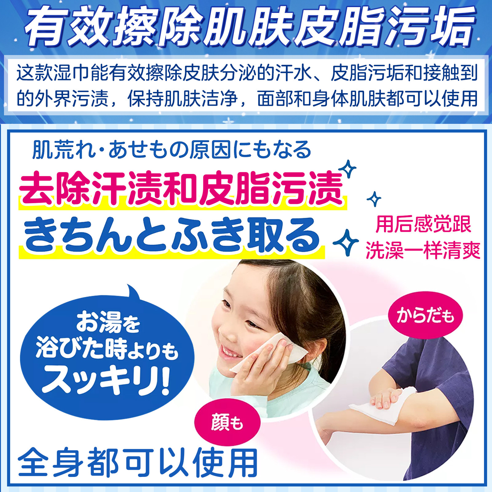 📚 日本花王碧柔Biore擦汗湿巾脸部全身体清洁夏天便携款洗澡湿纸巾