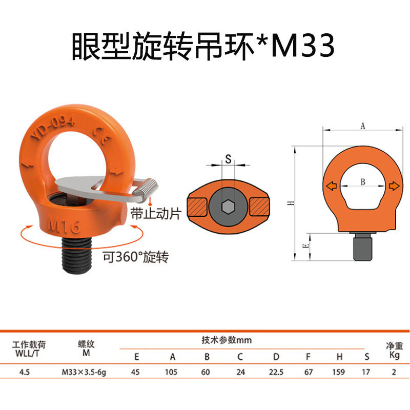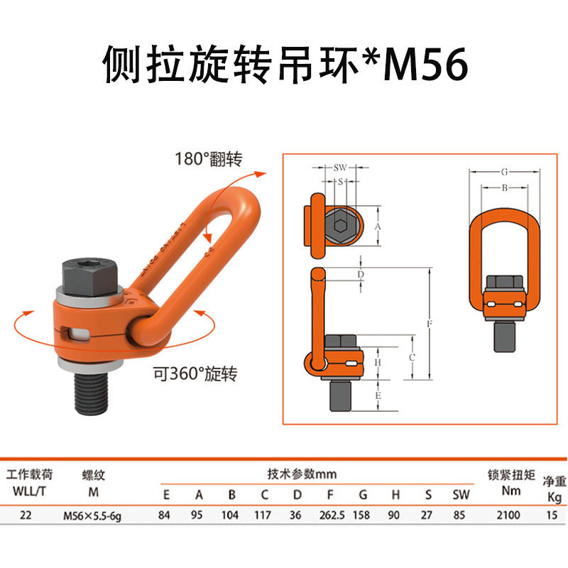 📚 万向旋转吊环侧拉眼型重力360度起重旋转扣m56吊耳yds旋转吊环