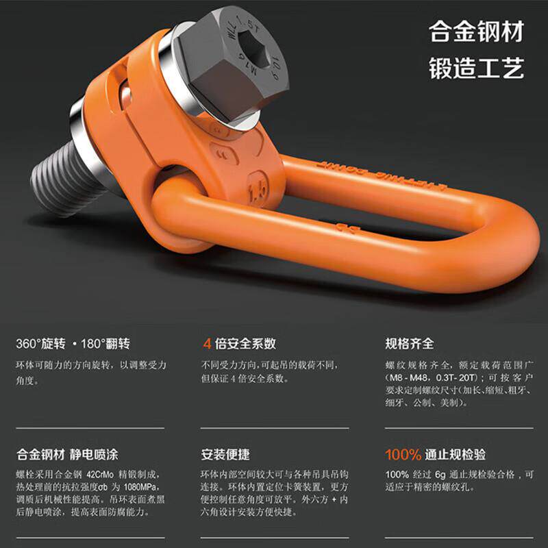 📚 侧拉万向旋转吊环高强度螺栓吊点60°吊耳扣M8-M56斜拉起重模具