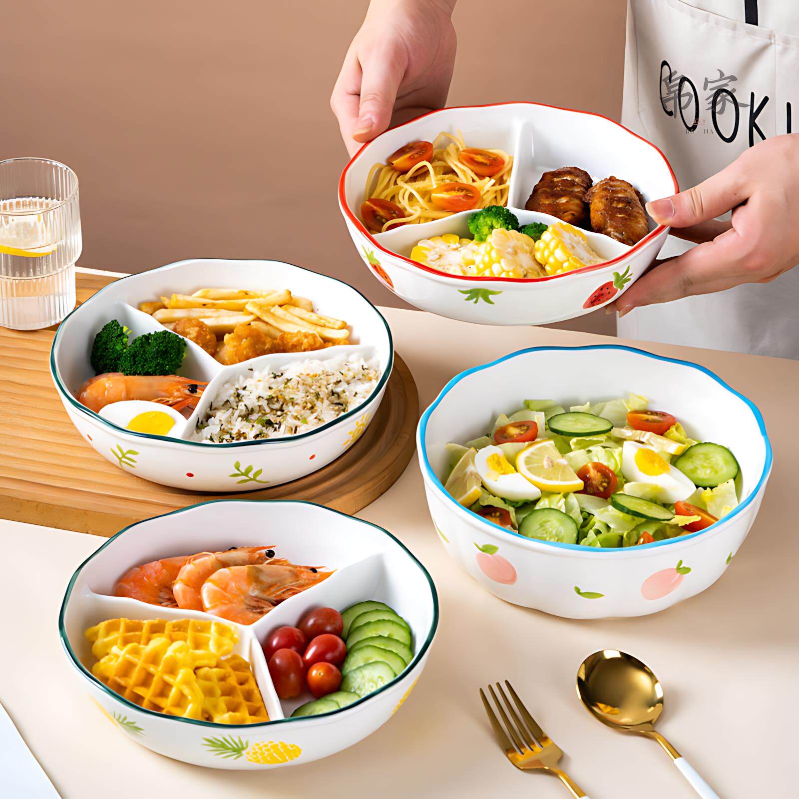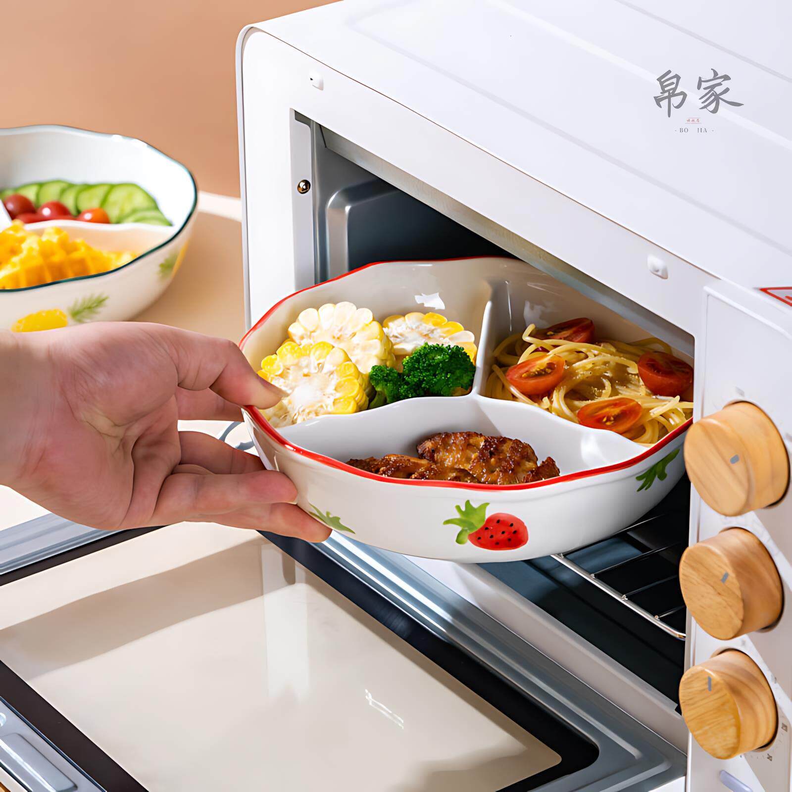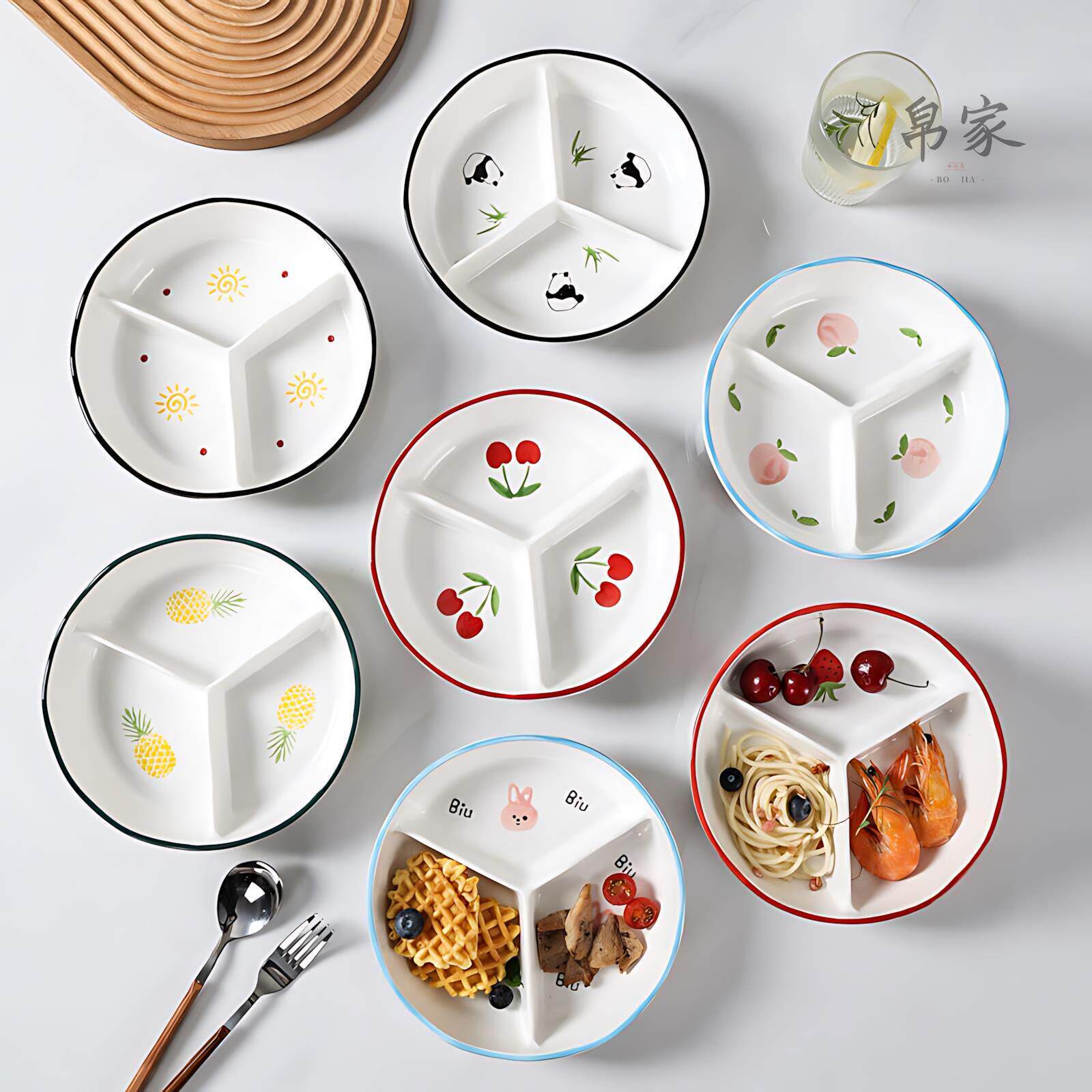 📚 陶瓷加深分格餐盘带盖减脂三格盘可微波炉菜盘水果盘儿童便当餐盘