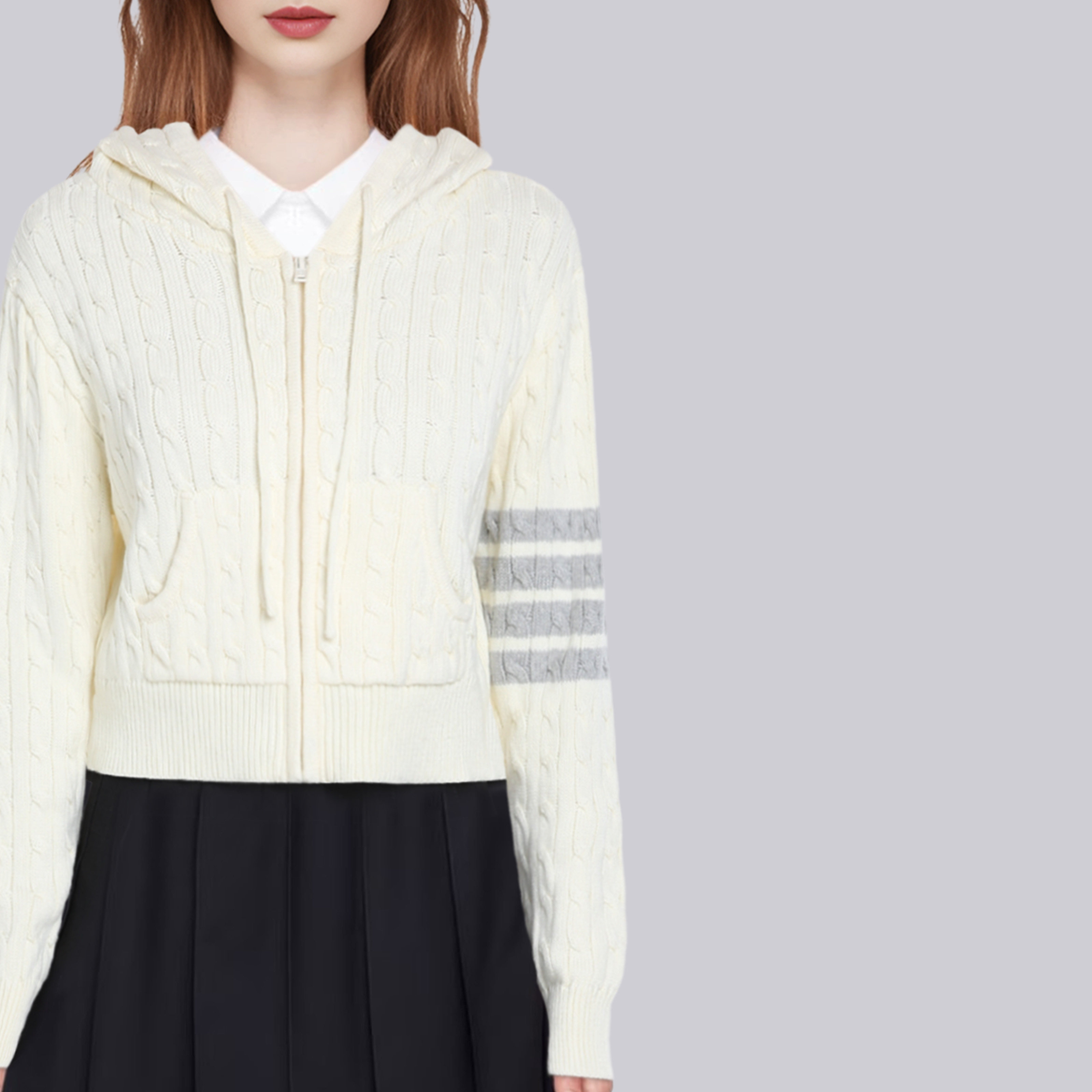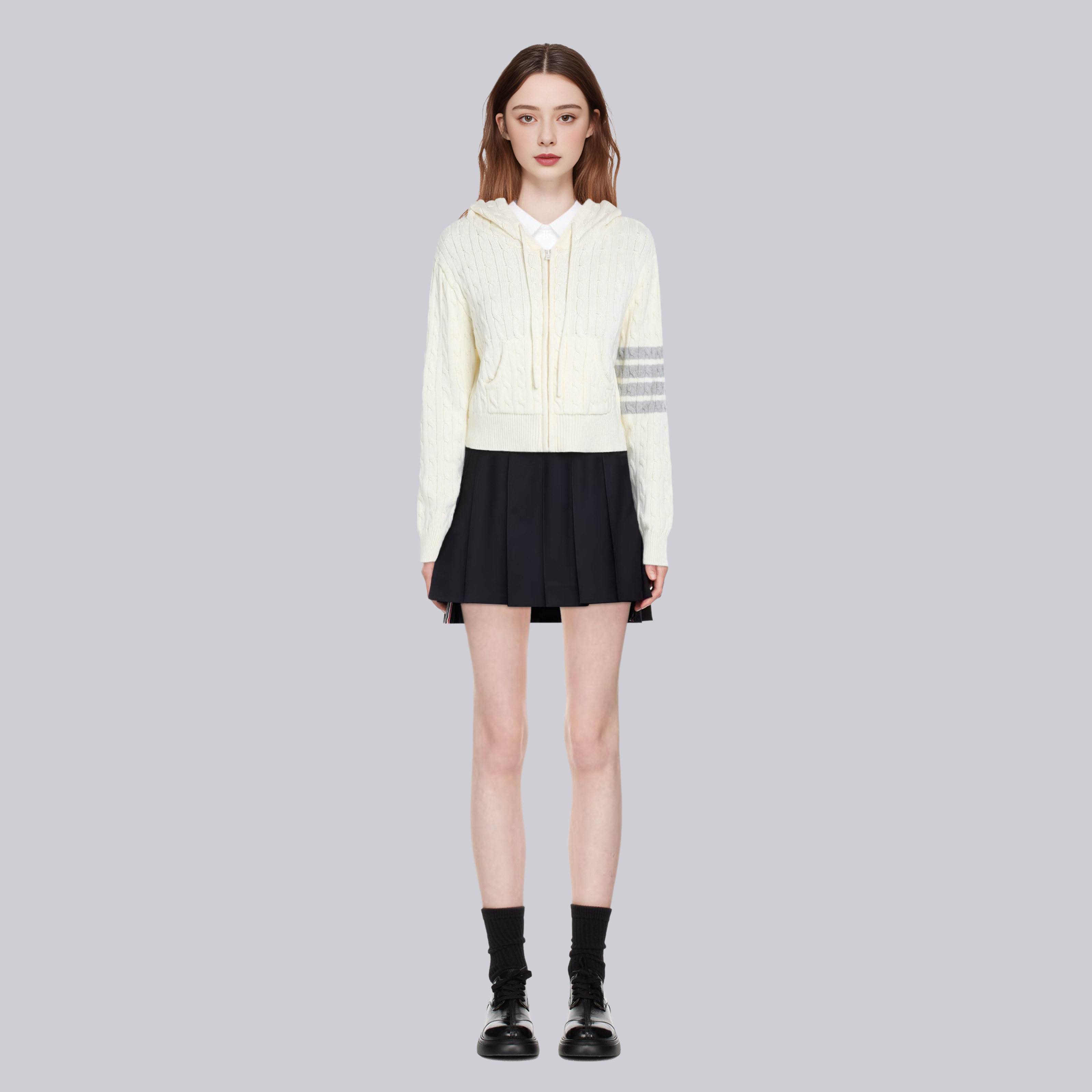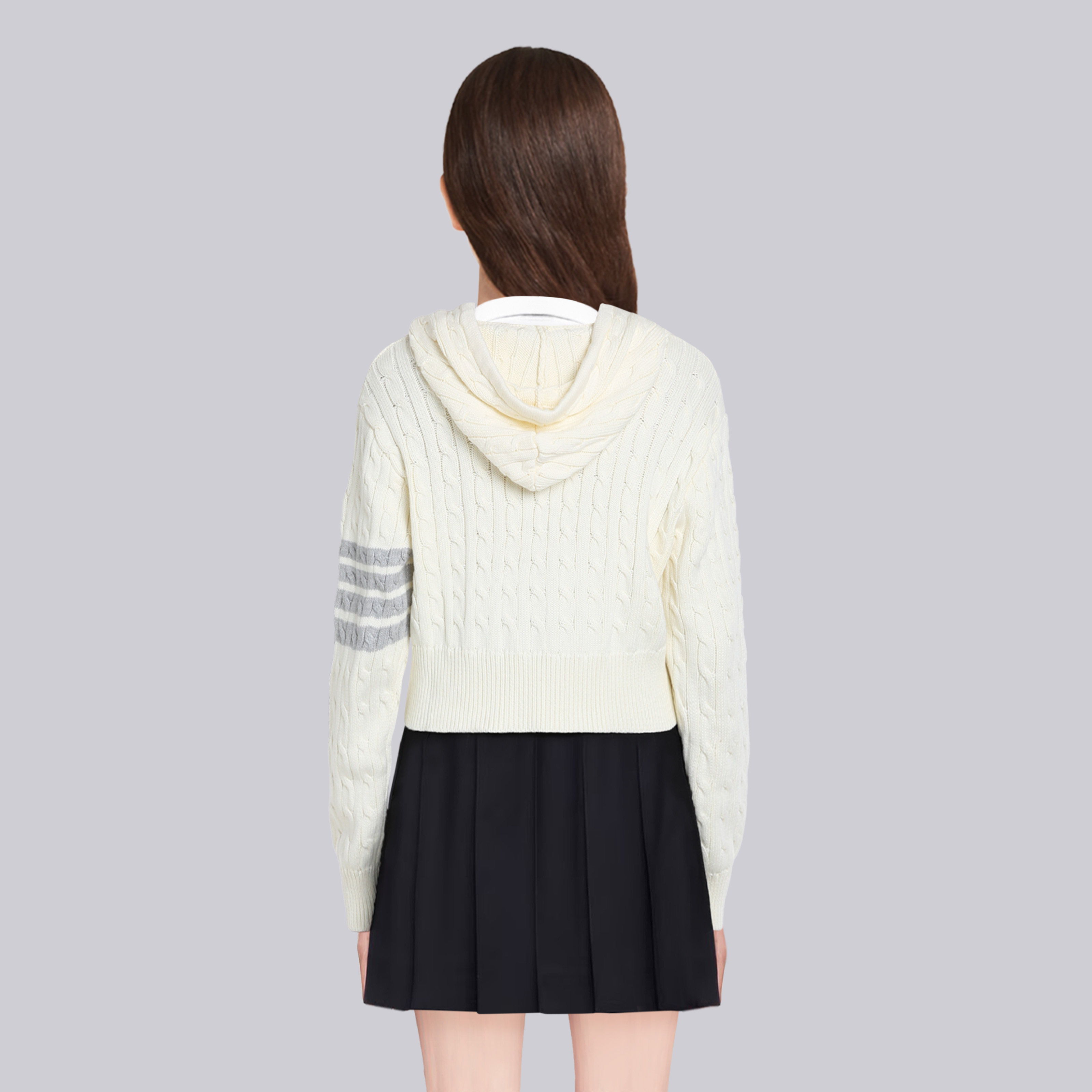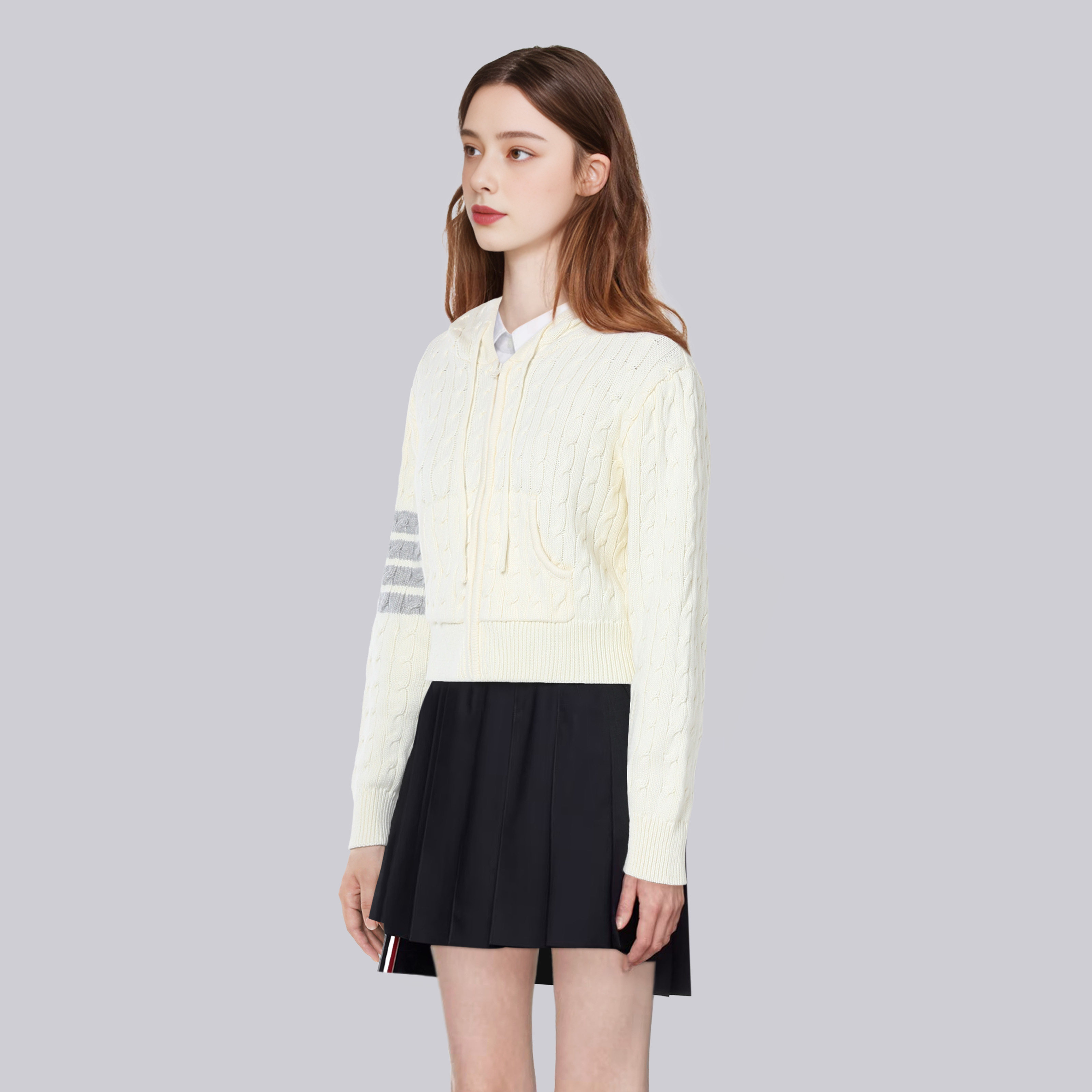 📚 TB四杠麻花连帽针织开衫tb上衣女慵懒风宽松显瘦百搭短款毛衣外套