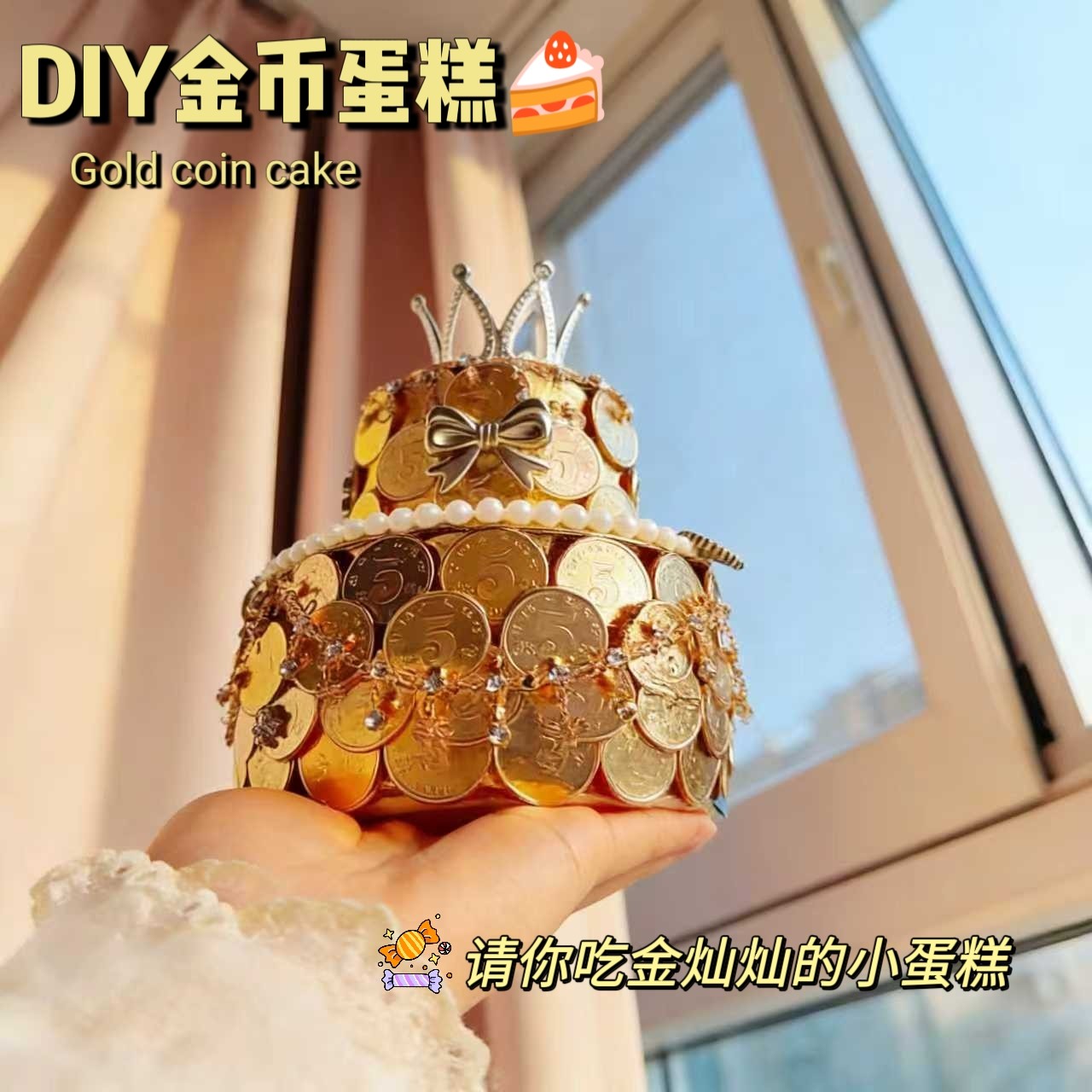 📚 创意手捧硬币蛋糕diy材料包硬币皇冠蛋糕模具套装女朋友生日礼物