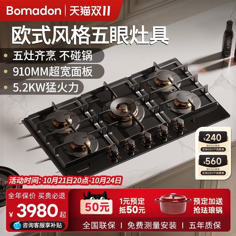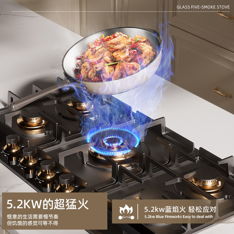 📚 德国波曼登五眼燃气灶家用多头煤灶气灶五孔5头天然气嵌入台式炉