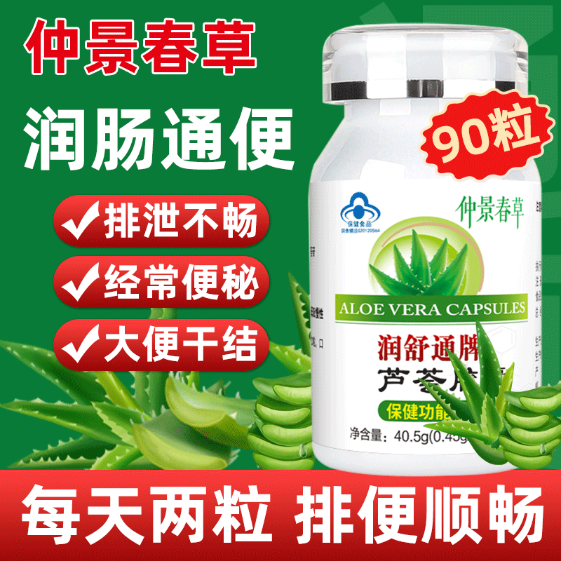 📚 90粒/盒蓝帽100%纯芦荟粉正宗芦荟胶囊润肠通便排毒正品便秘者大便排宿便清肠库冻干库拉索芦荟全叶粉软胶囊便秘克星调理肠胃神器
