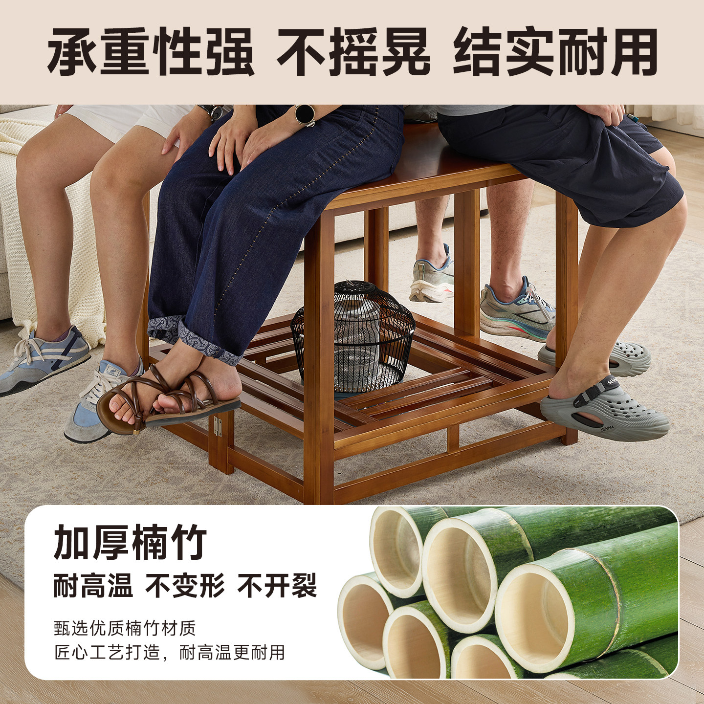 烤火实木楠竹正方形茶几