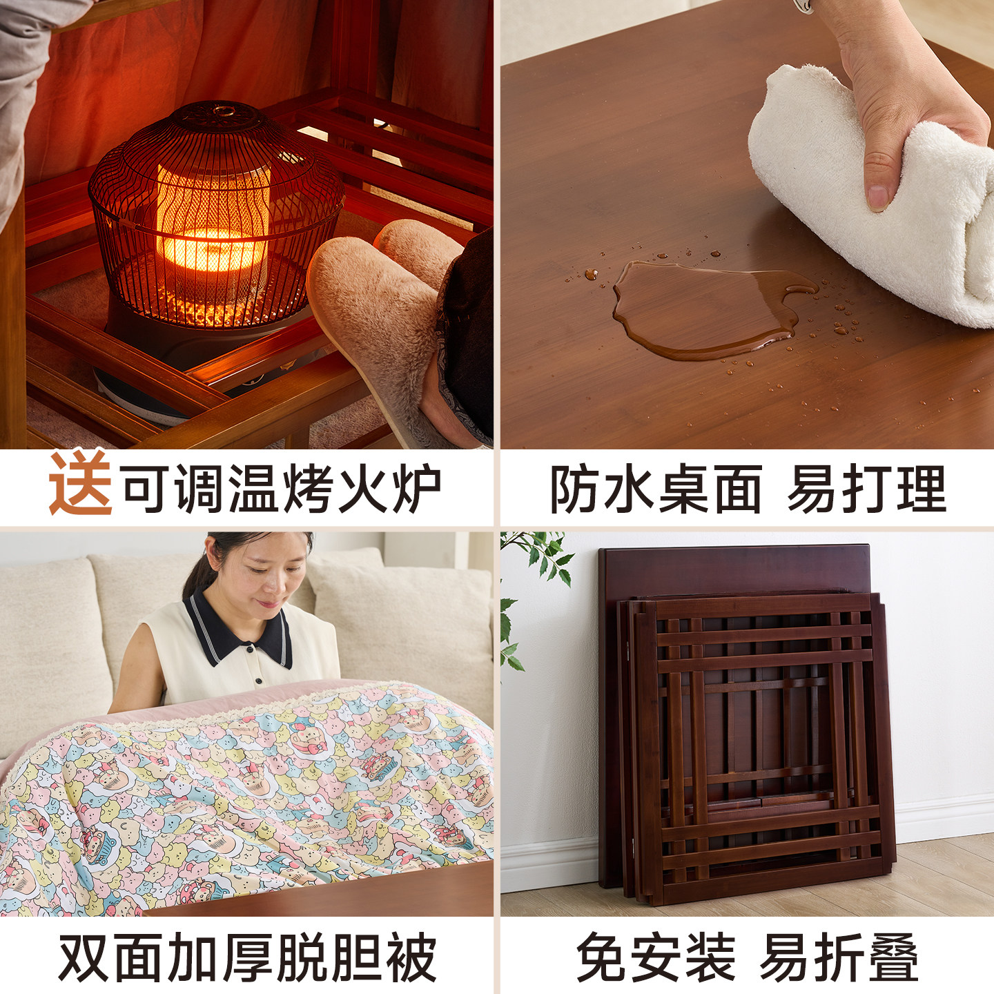 🌈一进店就被这款取暖桌吸引了!它的设计简约时尚,实用性强,完全符合现代家居风格。而且它采用实木材质,保证了产品的耐用性和舒适度。更重要的是,它可折叠设计,方便收纳,省空间。对于喜欢在家享受温暖的朋友们来说,真的是太友好了!