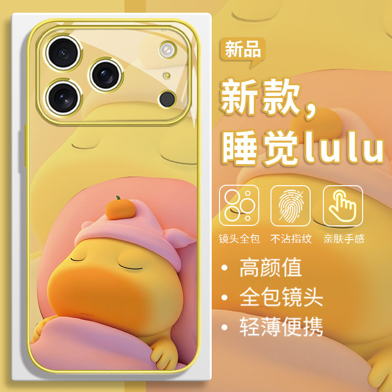 📚 睡觉水豚LULU手机壳适用苹果17promax噜噜iPhone16plus情侣15pro周边14卡通12mini/11新款xsmax玻璃13橙黄色8