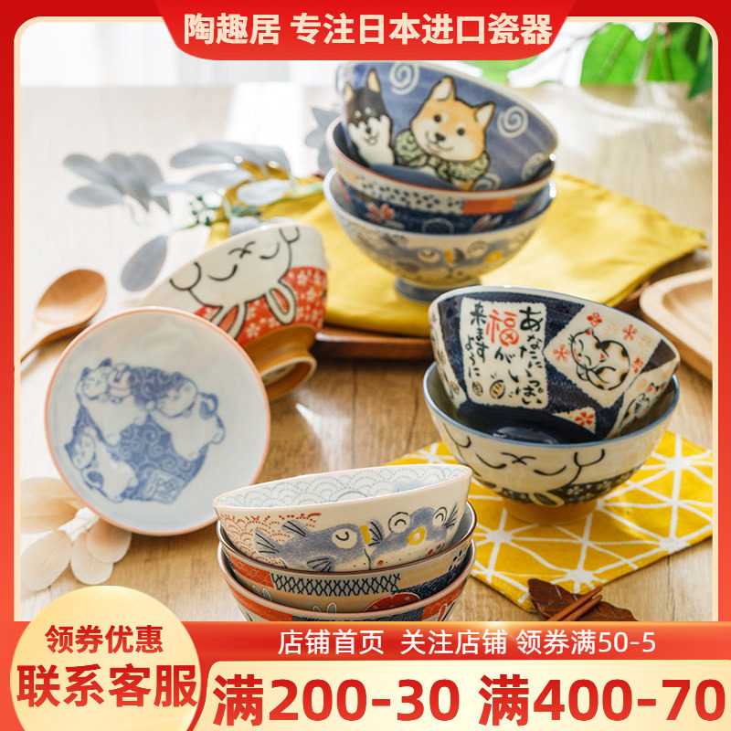 📚 日本进口卡通陶瓷碗釉下彩亲子碗日式动物高脚碗汤碗面碗家用儿童