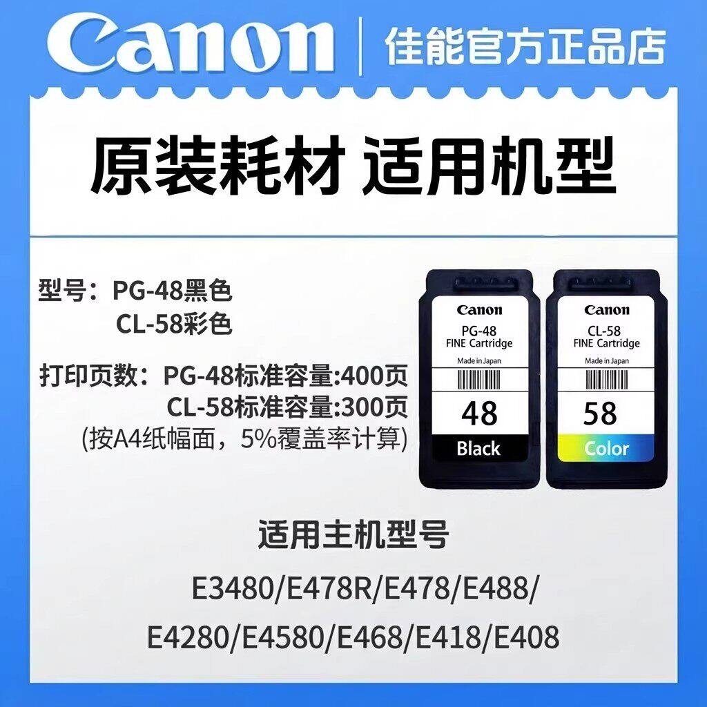 📚 佳能E408 E418 E468原装PG-48/58墨盒 E478 E488 E4280 E3480 E4580 E478R 喷墨打印机墨盒黑色CL-58彩色