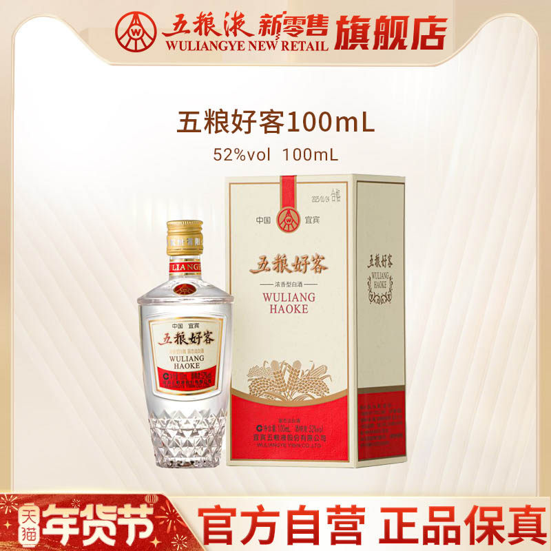 📚 【快递不停运】五粮好客商务系列52度100mL浓香白酒伴手礼