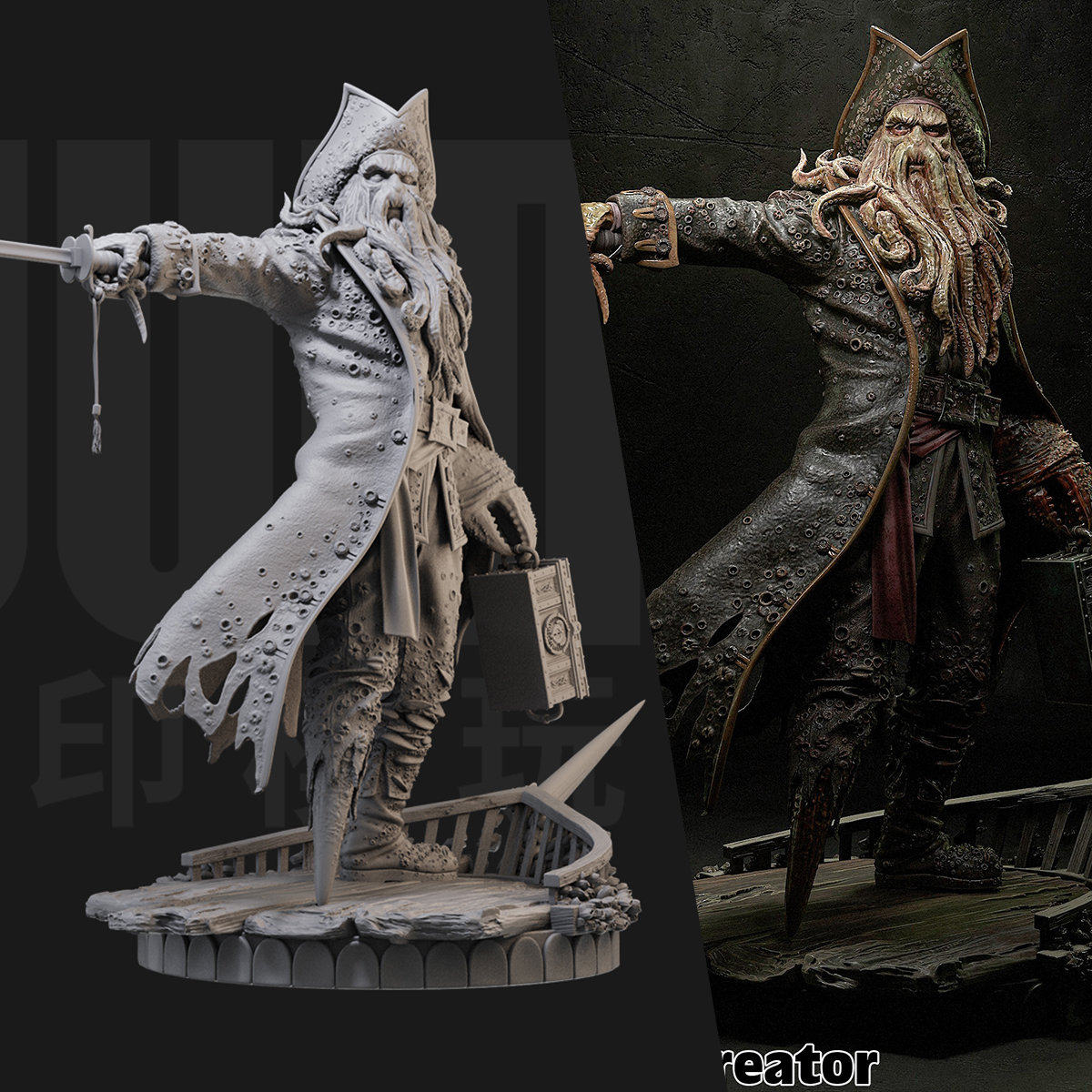 📚 1/24 戴维琼斯 加勒比海盗 18比例GK白模手办3D打印兵人模型 4925