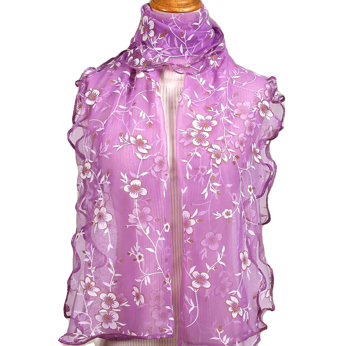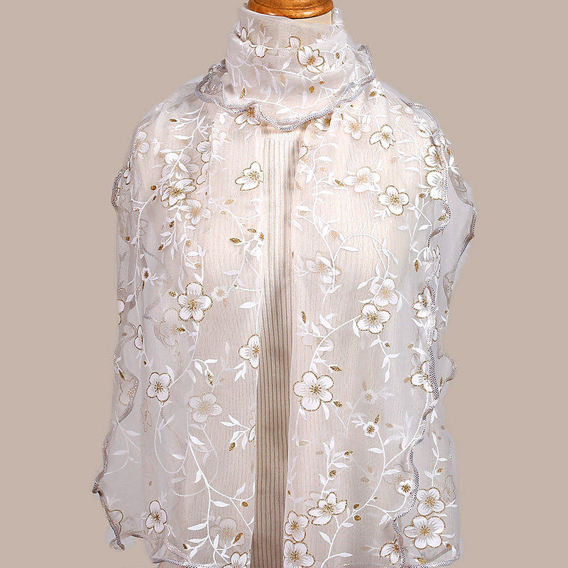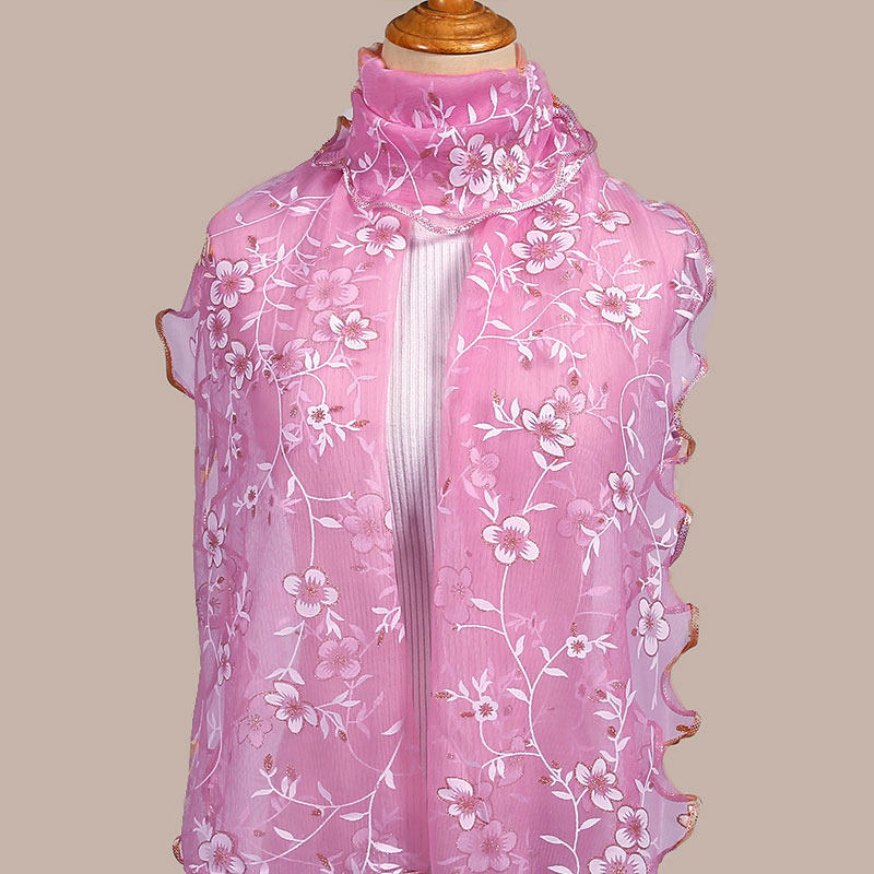 📚 围脖女新款印花围巾妈妈护颈时尚保暖长纱巾荷叶边刺绣披肩小丝巾