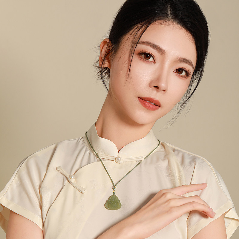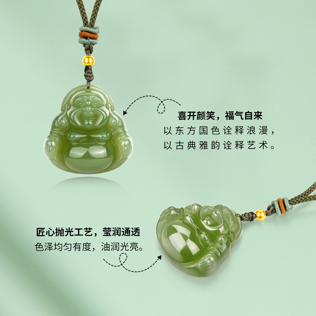 📚 梦金园和田玉小佛足金吊坠经典佛公黄金挂坠弥勒佛玉石挂件礼物