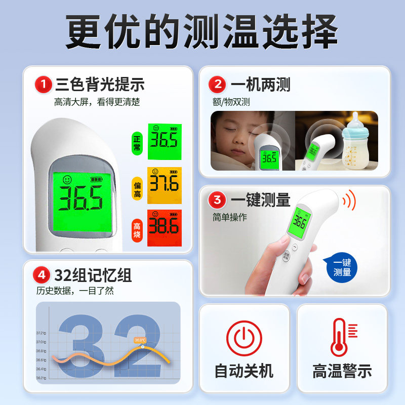 📚 加锐医用额温枪耳温计红外线电子体温计高精度成人婴儿家用额温枪