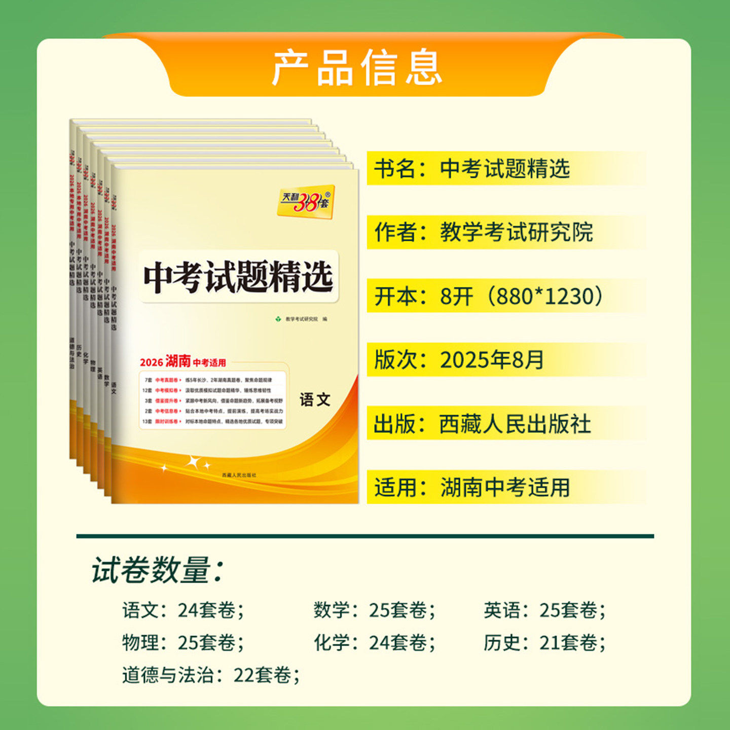 📚 备考2026天利38套中考试题精选湖南长沙中考试卷语文数学英语物理化学生物地理历史政治初三试题精选模拟专项训练中考复习资料