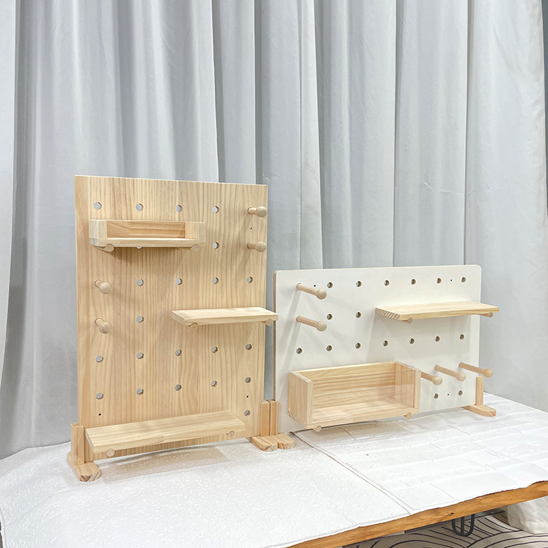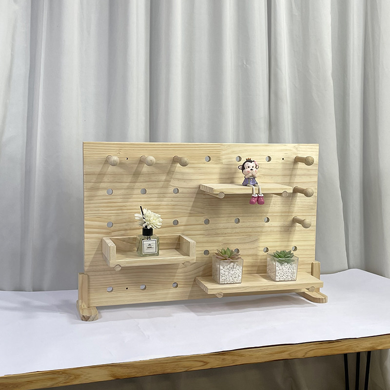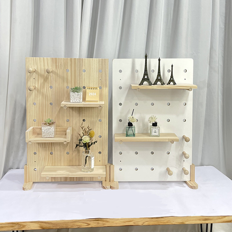 📚 实木桌面洞洞板置物架立式陈列架书桌收纳架子木质桌上展示架定制