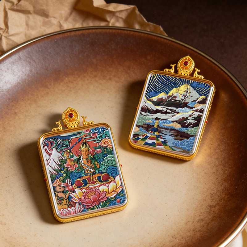 📚 文创景区可定图擦擦唐卡冈仁波齐黄财药师文殊黑财擦擦民族风吊坠