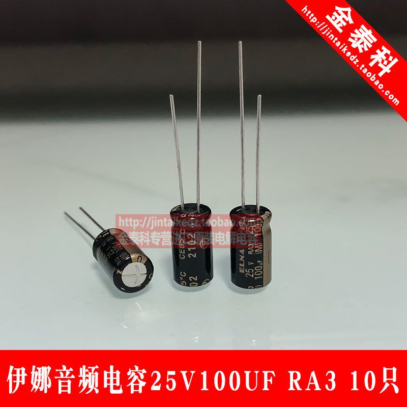 📚 伊娜25V100UF 6.3X11 RA3 ELNA音频烧电容 黑金 10只 100UF25V