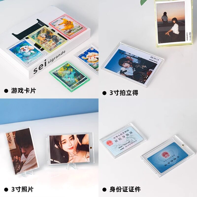 📚 亚克力卡砖相框小卡拍立得高清展示架diy宝可梦三连3连有卡槽强磁